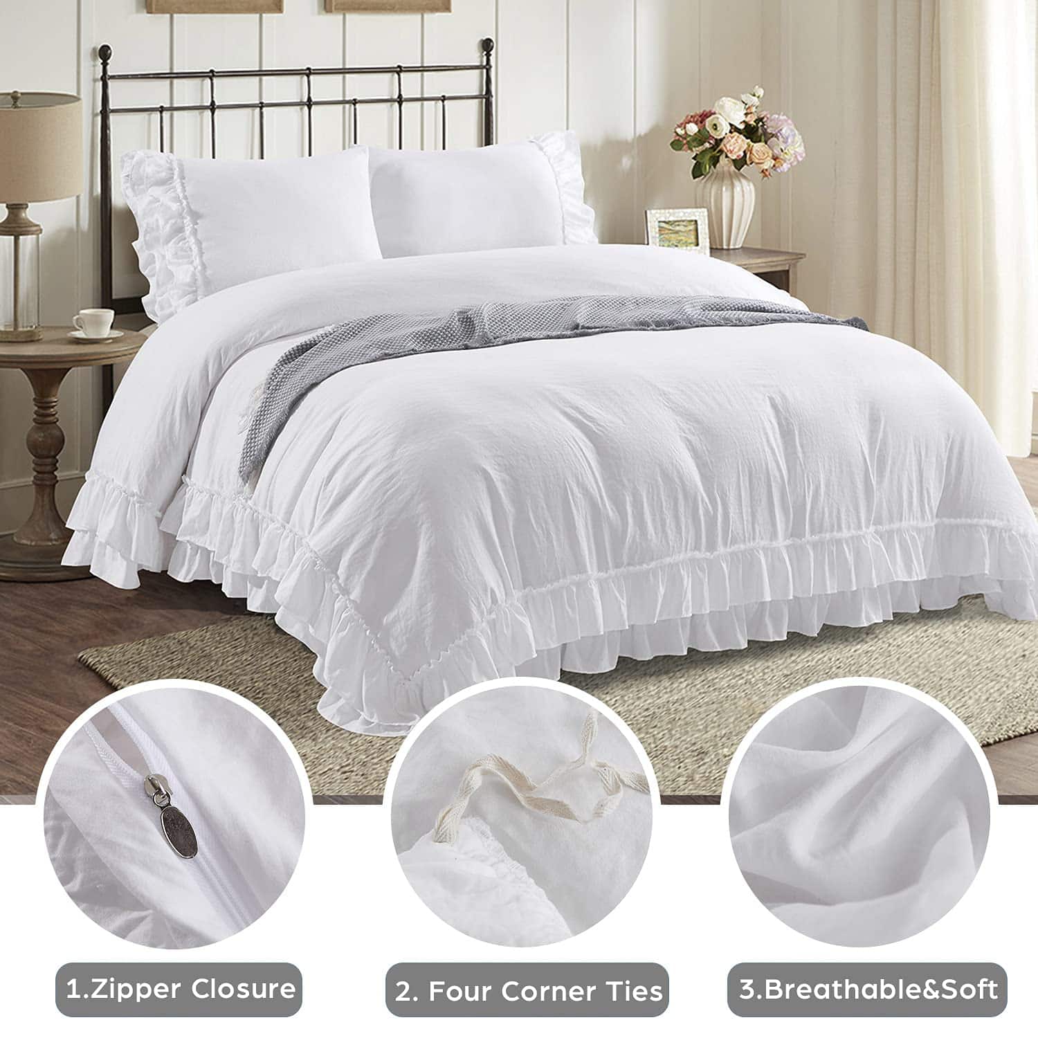 Juego de Funda Nórdica HIG de 3 Piezas King con Volantes
