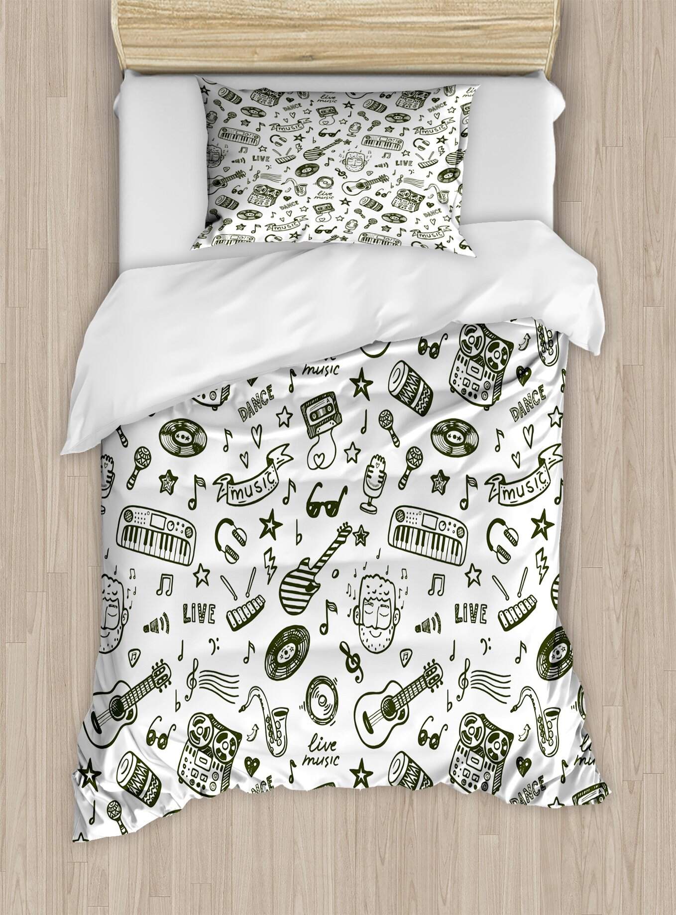 Juego de Funda Nórdica Hipster Ambesonne, Patrón Musical