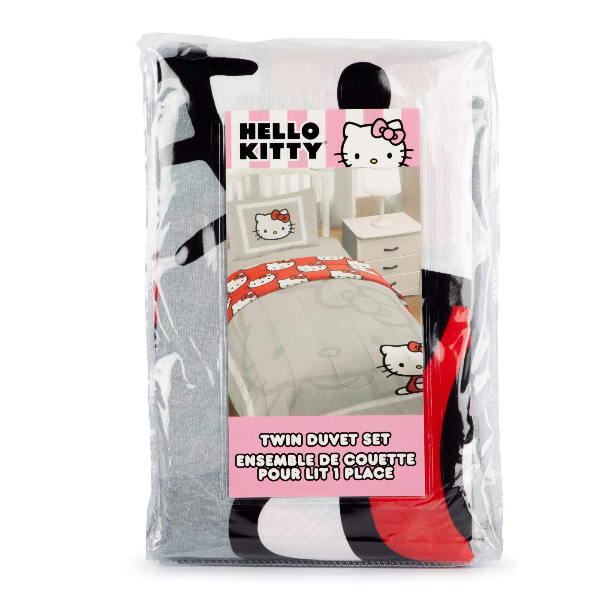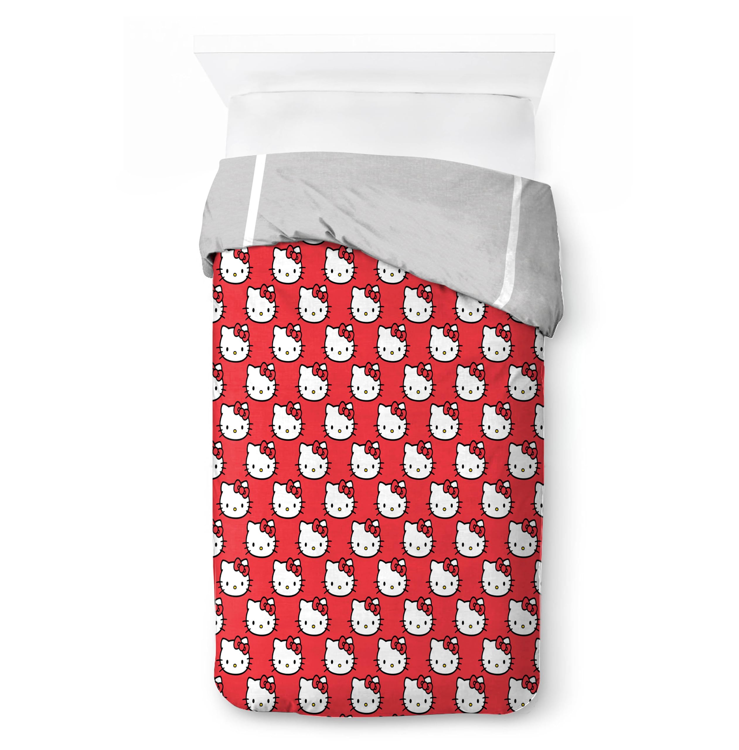 Transforma tu dormitorio con nuestro juego de funda nórdica Hello Kitty de 2 piezas, tamaño individual, que incluye una funda nórdica y dos fundas de almohada a juego. Perfecto para añadir comodidad, estilo y personalidad a cualquier habitación, este set da vida a la hora de dormir con su diseño reversible y toque lúdico. Fabricada con poliéster de microfibra cepillada de primera calidad, la funda nórdica y las fundas de almohada son increíblemente suaves, duraderas y transpirables para una noche de sueño reparador. La funda nórdica incluye un cierre de botón para un uso fácil y un ajuste seguro, mientras que el diseño reversible te permite cambiar el aspecto de tu cama cuando lo desees. El set viene completo con una funda nórdica individual (64″ x 86″) y una funda de almohada a juego (20″ x 26″), lo que facilita la creación de un espacio de descanso coordinado y acogedor. Ideal para cualquier fan, este juego de funda nórdica es perfecto para uso diario, pijamadas o como un regalo atento para cumpleaños y festividades. Los vibrantes diseños con Hello Kitty añaden un toque de diversión a cualquier decoración de dormitorio kawaii, ayudando a estimular la imaginación y hacer que su habitación se sienta extra especial. Te encantará la conveniencia de este juego de funda nórdica lavable a máquina, asegurando un fácil cuidado y un color duradero que se mantiene con buen aspecto lavado tras lavado. Dale a tu habitación una actualización fresca con este juego de funda nórdica Sanrio divertido, versátil y elegante, la manera perfecta de crear un ambiente de descanso cómodo y acogedor que amarás!