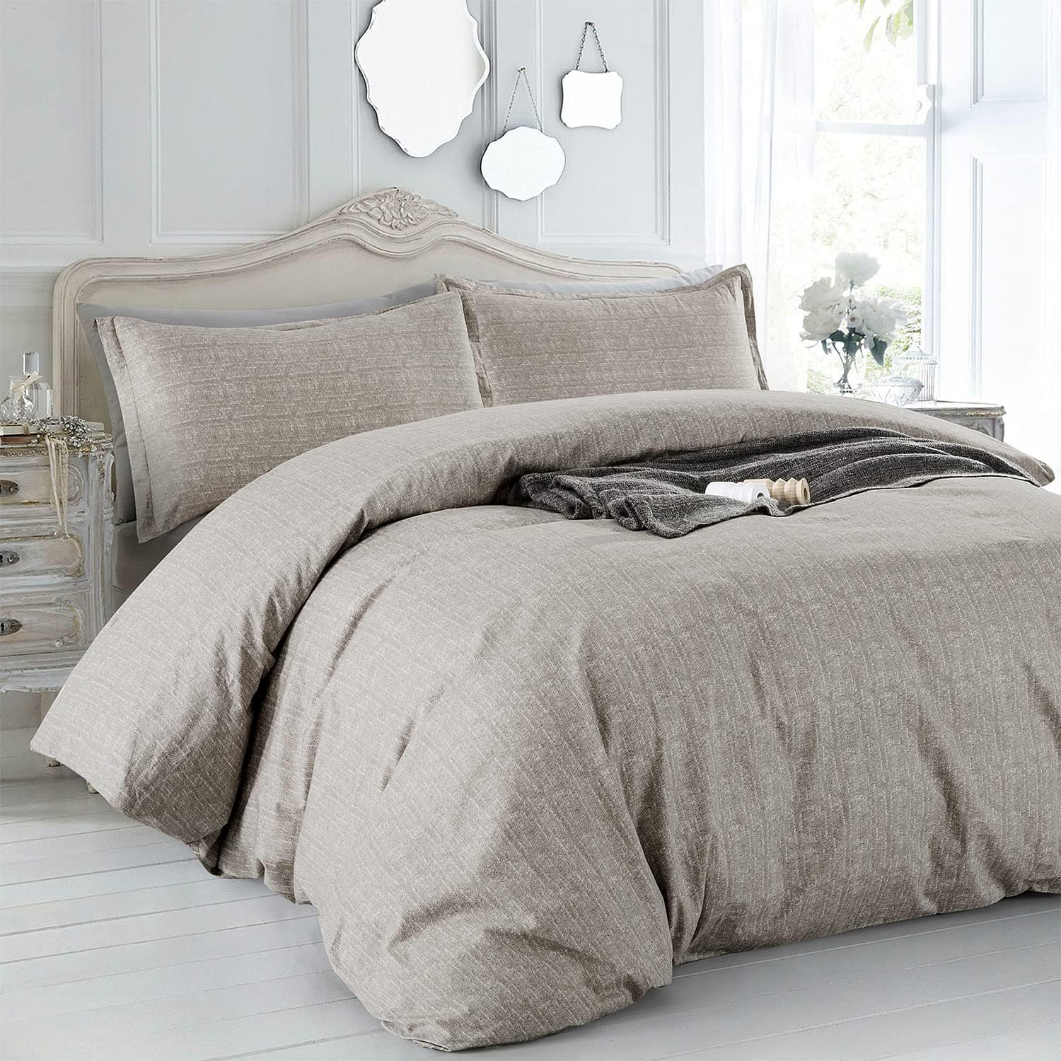 Villa Feel Home se enorgullece de la sencillez indulgente con detalles inspirados y ha ofrecido soluciones de ropa de cama premium para llevar más sofisticación y calidez a millones de personas en todo el mundo. Y, lo que es más importante, establecimos nuestra misión no solo para ofrecer lo más suave, acogedor y cómodo del mercado, sino también para construir tu hogar de ensueño «más que confort». Trae una sensación relajante a tu cama con este juego de funda nórdica de algodón 100% premium. Te ofrecemos una apariencia elegante atractiva y atemporal, asequible y cómoda para el día a día. Estos juegos de funda nórdica se coordinan fácilmente con el estilo de tu dormitorio. Nuestros juegos de funda nórdica están hechos de tejidos de algodón puro 100% premium, suaves, transpirables, duraderos y cómodos. Los colores se mantendrán fieles incluso después de múltiples lavados siguiendo nuestras instrucciones de lavandería. Estas fundas tienen cierre de botones para una inserción y extracción fáciles. Cada esquina tiene lazos internos en las fundas nórdicas para asegurar tu edredón de plumas/edredón para evitar deslizamientos. Las fundas de almohada tienen una apertura de solapa, fácil y conveniente de usar. Dimensiones: Tamaño Twin Incluye: 1 Funda Nórdica de 68 x 92 pulgadas, 1 Funda de Almohada de 20×26 pulgadas. Tamaño Queen Incluye: 1 Funda Nórdica de 90 x 90 pulgadas, 2 Fundas de Almohada de 20×26 pulgadas. Tamaño King Incluye: 1 Funda Nórdica de 104 x 90 pulgadas, 2 Fundas de Almohada de 20×36 pulgadas. Garantía: