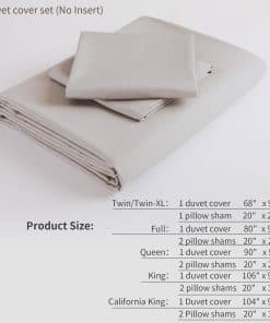 4. Fácil cuidado – Nuestro juego de funda nórdica es resistente a las arrugas, resistente a la decoloración, no encoge, solo lavar a máquina en un ciclo perpetuo en agua fría y secar a baja temperatura. No usar lejía ni secar en secadora.