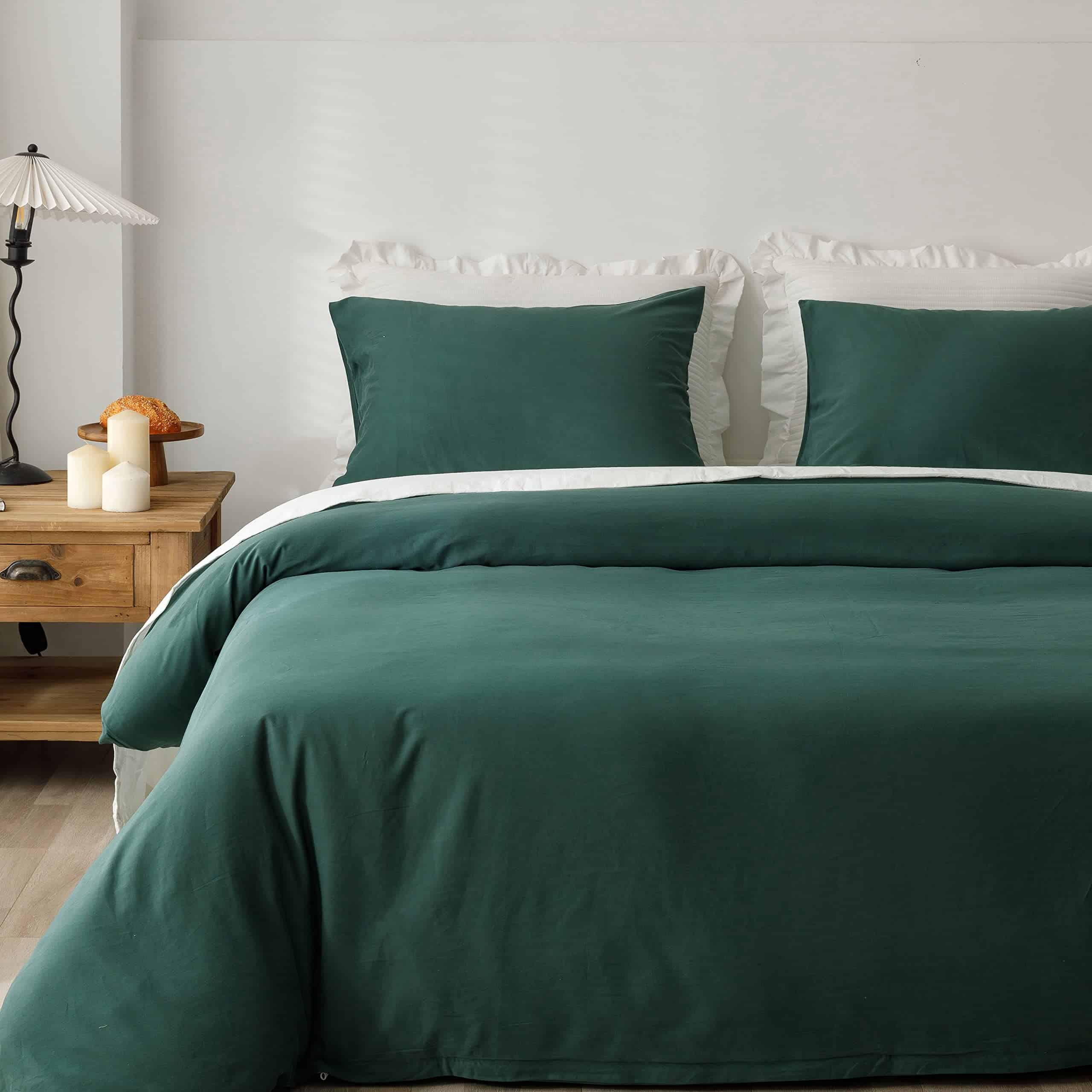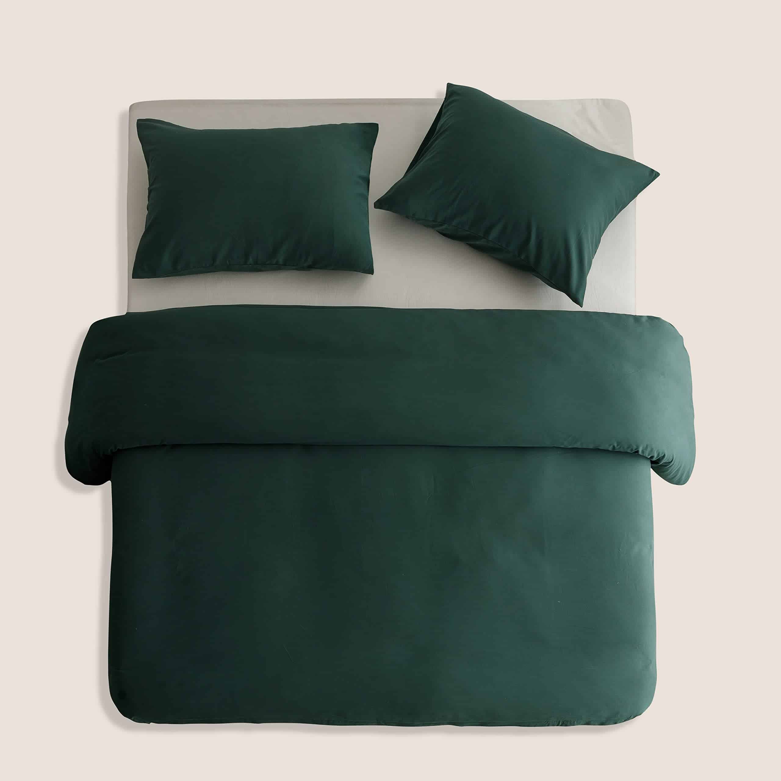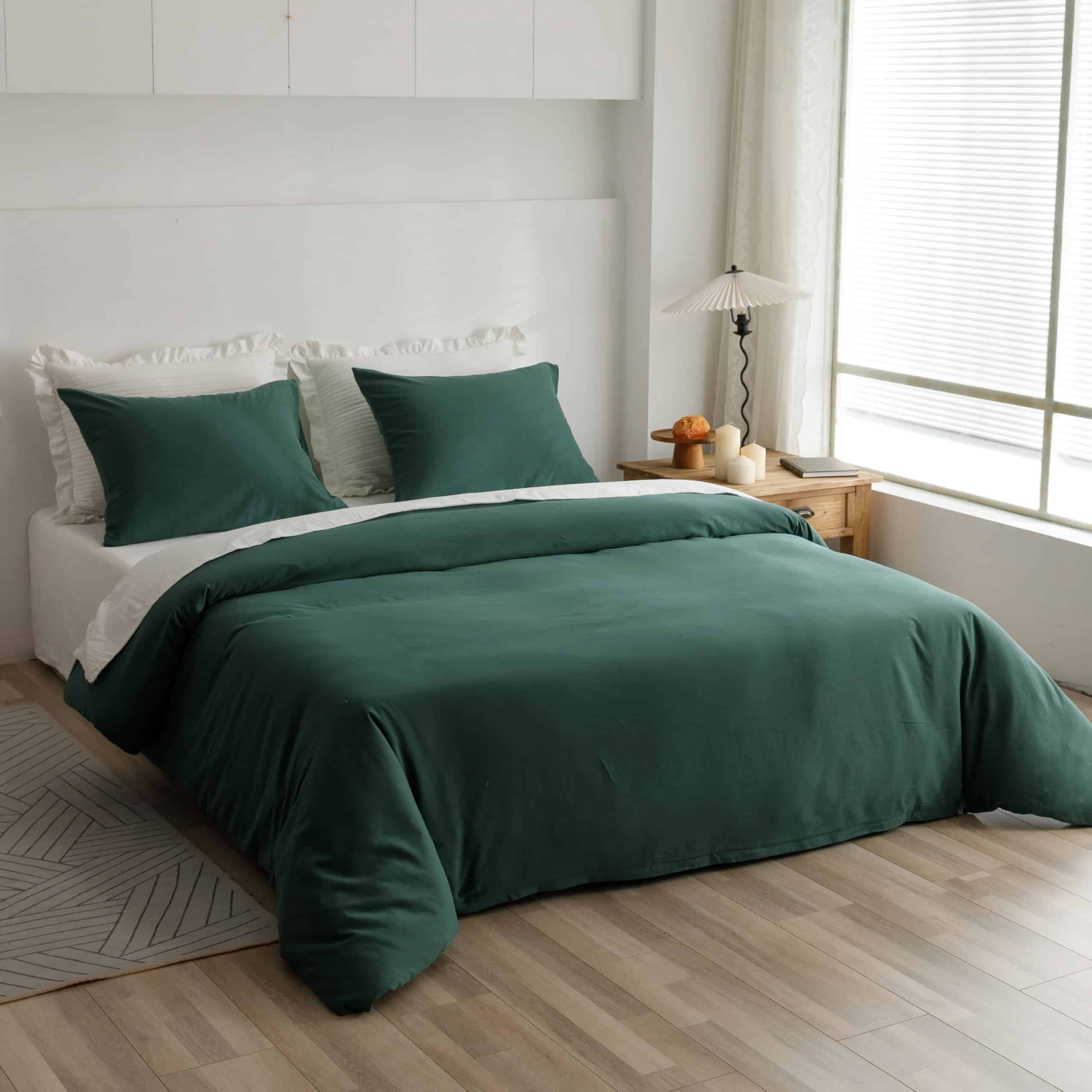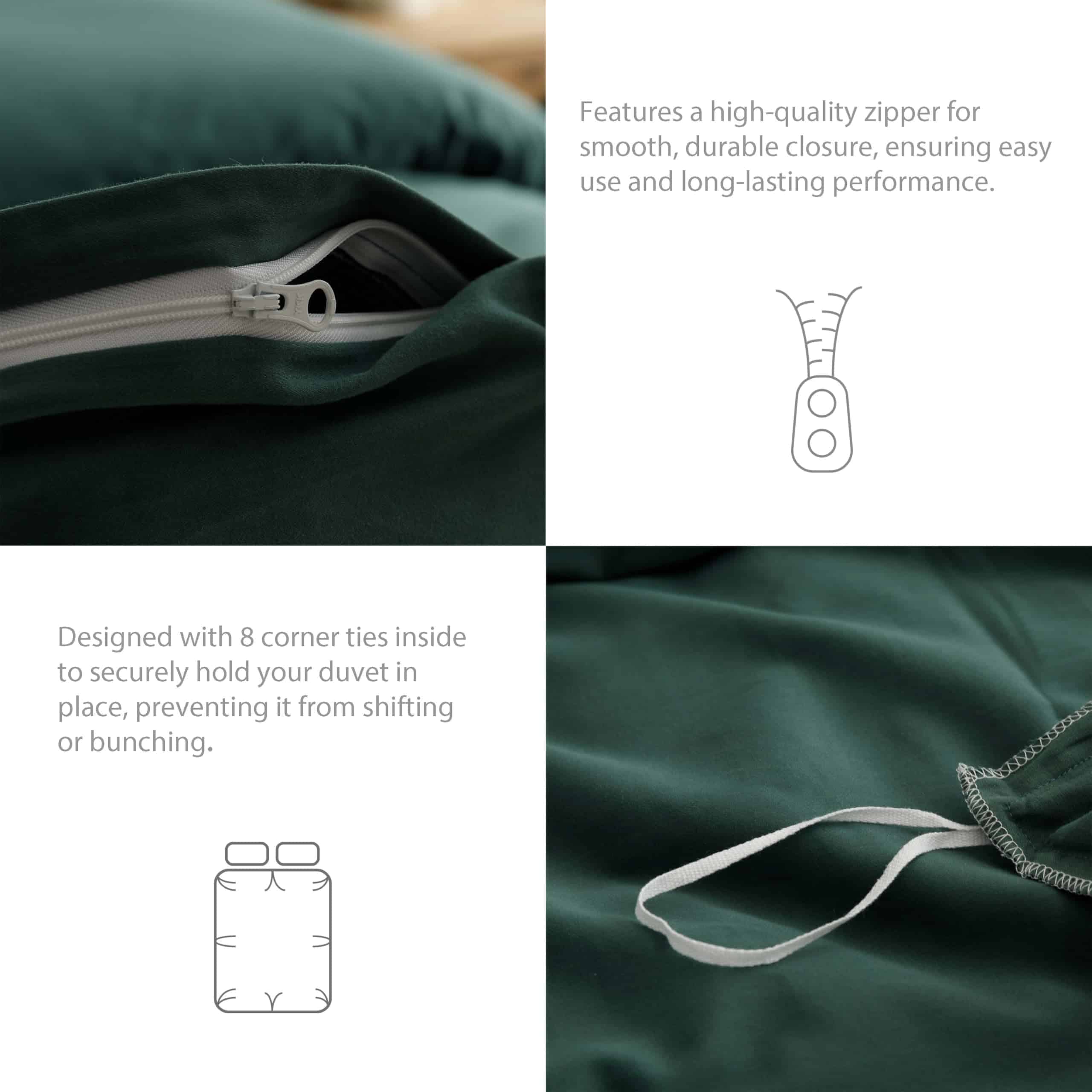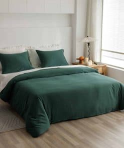 1. TELA DE ALGODÓN PREMIUM: Disfruta del lujo de la comodidad de nuestro juego de funda nórdica de algodón de fibra extra larga 100%. Elaborada con cuidado, la tela de alta calidad garantiza transpirabilidad, durabilidad y un tacto irresistiblemente suave. Experimenta una noche de sueño placentera con nuestra ropa de cama de algodón premium. 2. SET DE ROPA DE CAMA DE TAMAÑO KING COMPLETO: Nuestro set de funda nórdica King incluye 1 funda nórdica King que mide 104″ de ancho x 90″ de largo y 2 fundas de almohada tamaño King con cierre de sobre que miden 20″ de ancho x 36″ de largo. Crea un aspecto elegante y coordinado para tu dormitorio con este set cuidadosamente diseñado. Atención: el inserto de la funda nórdica /edredón no está incluido, debe comprarse por separado. 3. LUJO DURADERO CON ALGODÓN EGIPCIO: Disfruta del confort duradero de nuestro juego de funda nórdica de algodón egipcio. El proceso de lavado único garantiza la solidez del color y la mínima contracción, a la vez que proporciona una suavidad excepcional. Eleva tu experiencia de sueño con el lujo asequible de una funda nórdica de hotel de 5 estrellas. 4. ARTESANÍA SUPERIOR: Elaborado meticulosamente con atención al detalle, nuestro juego de funda nórdica de 600 hilos ofrece calidad superior. El diseño de cremallera oculta garantiza un cierre sin esfuerzo, mientras que las 8 correas interiores mantienen tu inserto de la funda nórdica en su lugar de forma segura. Con una durabilidad mejorada y un 30% más de puntadas por pulgada, nuestro producto está diseñado para resistir la prueba del tiempo. 5. CUIDADO FÁCIL Y SERVICIO AL CLIENTE EXCEPCIONAL: Nuestra funda nórdica de algodón orgánico es fácil de cuidar. Simplemente lávela a máquina en agua tibia y séquela en secadora a baja temperatura. Nos enorgullece nuestro excepcional servicio al cliente y estamos dedicados a garantizar tu satisfacción. Si tienes alguna pregunta o inquietud, no dudes en ponerte en contacto con nosotros. Experimenta la comodidad y el estilo de nuestro set de funda nórdica, perfecto para regalar en ocasiones especiales. 6. VERDE OSCURO ATemporal: Experimenta la sofisticación atemporal con nuestro set de funda nórdica Verde Oscuro. Elaborado para la elegancia y la comodidad, transforma tu espacio de descanso con un encanto cautivador.