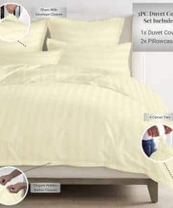 El Juego de Ropa de Cama King de 3 Piezas INCLUYE: 1 x Funda Nórdica de 104 x 90 | 2 x Fundas de Almohada de 20 x 36. Con cierre de botón oculto y 4 lazos de esquina, la Funda Nórdica permanece en su lugar para una experiencia conveniente. Las Fundas de Almohada cuentan con un elegante detalle de 5 cm. La artesanía elegante de la Funda de Edredón King está diseñada para darle a la decoración de tu dormitorio un aspecto moderno. El diseño a rayas es atemporal y contemporáneo, y puedes combinarlo fácilmente con otros accesorios de ropa de cama. Disfruta de un sueño reparador con los Juegos de Funda Nórdica transpirables y suaves que permiten que tu piel respire naturalmente. Nuestro Juego de Funda Nórdica es la opción de regalo definitiva para todas las ocasiones, incluido el Día de San Valentín, el Día de Navidad, el Día de la Madre y el Día del Padre. DISEÑO SOSTENIBLE: Nuestro proceso de descarga cero garantiza que utilicemos solo agua reciclada y ahorremos agua potable para el consumo. Fabricamos en una fábrica que cumple con BSCI y el Estándar Oeko-Tex 100, y estamos comprometidos a utilizar un sistema efectivo y bien establecido para mejorar las condiciones laborales en nuestra cadena de suministro y asegurar que nuestros textiles cumplan con los estándares de seguridad más altos. Utilizamos solo algodón 100% de fibra larga de origen sostenible que es mejor para ti y para el medio ambiente. GARANTÍA DE SATISFACCIÓN: Nuestra Funda Nórdica de 300 Hilos de Algodón tamaño Queen a cuadros es meticulosamente hecha a mano por nuestros hábiles artesanos y cada pieza es revisada antes de llegar a ti. Estamos seguros de que te encantará nuestro Juego de Funda Nórdica, además de la garantía de Mercado Libre, también ofrecemos nuestra propia garantía, si no estás feliz, simplemente devuélvelo dentro de los 30 días posteriores a la compra. GUÍA DE CUIDADO: Los tintes resistentes a la decoloración de la sábana ajustada a cuadros de 300 hilos soportan múltiples ciclos de lavado y permanecen brillantes incluso después de un uso prolongado para mantener la calidad del color. Lavar a máquina en ciclo suave y secar en ciclo suave. El blanqueador o las cremas que contienen agente blanqueador pueden causar pérdida de color.