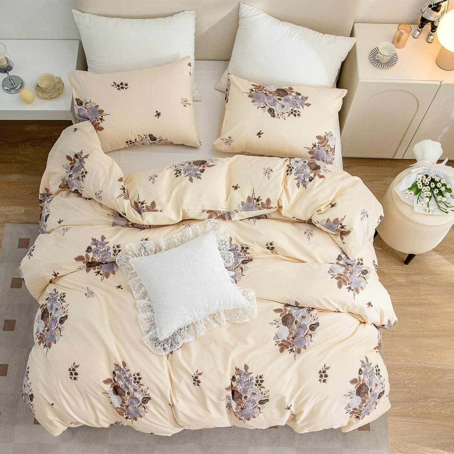 Juego de Funda Nórdica King Floral, Suave 100% Algodón 3