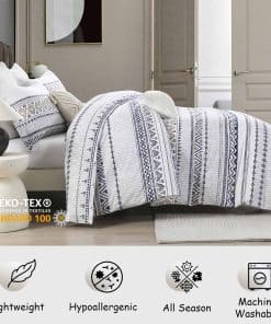 1. Diseño bohemio de funda nórdica King: Esta funda nórdica bohemia a rayas King crea sin esfuerzo un atractivo chic en tu dormitorio con el diseño bohemio, agregando un toque sutil y bohemio a tu decoración. Se ve genial – elegante, capaz de combinar con mucho, pero aún así distinto y elegante, fácil de decorar y refrescar tu dormitorio. Funda nórdica de algodón 100% con estampado boho chic, cálida y cómoda para brindarte el cuidado más íntimo.