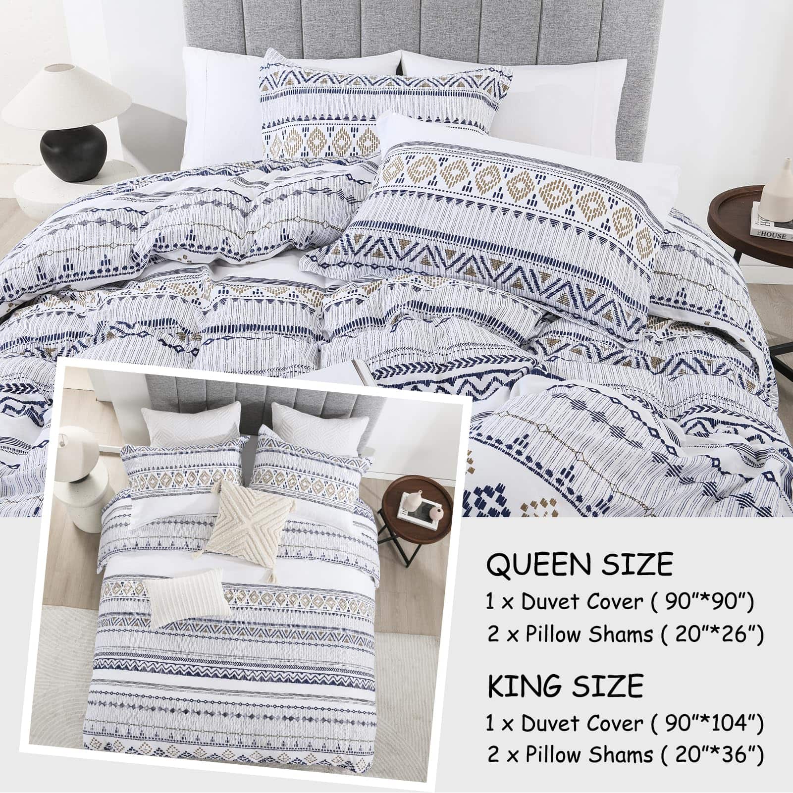 5. El juego de funda nórdica incluye: 1 funda nórdica bohemia King (104″ x 90″), 2 fundas de almohada (20″ x 36″). ¡ESTAS FUNDAS NÓRDICAS NO INCLUYEN EL RELLENO!