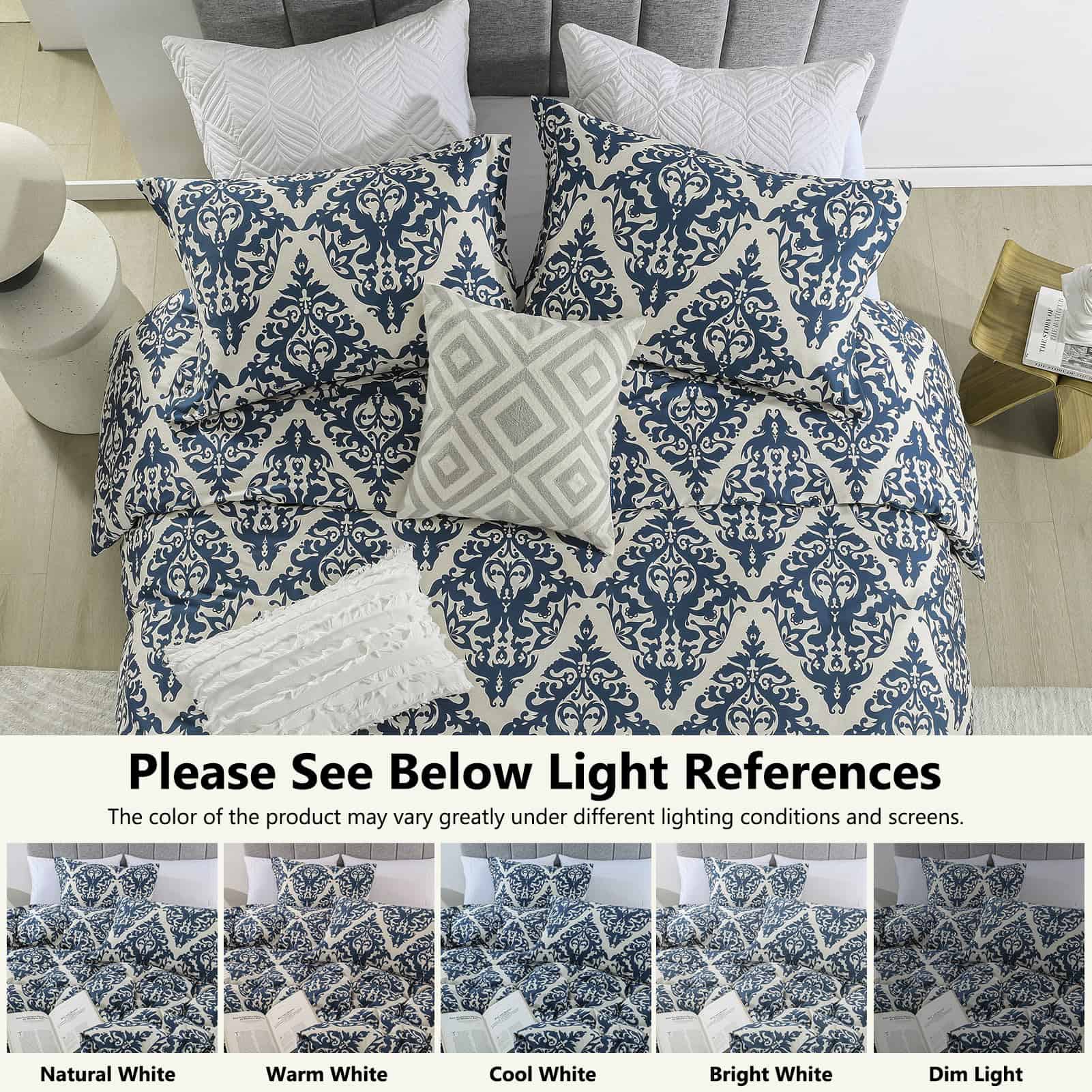Este juego de funda nórdica king size de algodón 100% tiene un aspecto elegante y versátil que puede adaptarse a una variedad de estilos de decoración de dormitorio. Hecho con materiales de alta calidad y un proceso de prelavado que garantiza la suavidad y comodidad duraderas. El diseño único en color azul, el cierre de cremallera metálica y los 8 lazos en las esquinas aseguran que el edredón se mantenga en su lugar de forma segura mientras proporciona un ajuste preciso. Además, la certificación Standard 100 de OEKO-TEX asegura que este juego de funda nórdica es respetuoso con el medio ambiente y seguro para el uso diario. Con este juego de funda nórdica king size, podrás disfrutar de una ropa de cama cómoda, segura y de alta calidad para ti y tu familia.