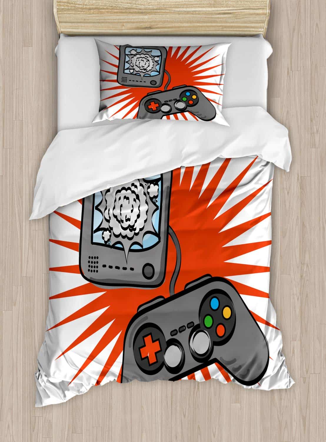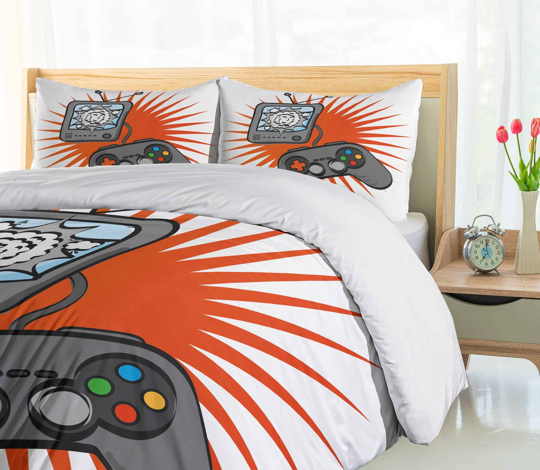 Juega y sueña con este juego de funda nórdica Lunarable con un diseño temático de videojuegos en estilo retro. El patrón único de gamepad y consola te transportará al mundo de la diversión y el entretenimiento. Este juego de ropa de cama de 2 piezas incluye una funda nórdica individual y una funda de almohada, perfecto para completar la decoración de cualquier habitación. Hecho de tela de microfibra cepillada 100%, este juego de cama es súper suave al tacto para brindarte la máxima comodidad. Con colores vivos e imagen nítida, este juego de funda nórdica añadirá un toque de diversión y estilo a tu dormitorio. La funda nórdica tiene una cremallera oculta sin complicaciones para facilitar su uso, mientras que las fundas de almohada tienen cierres de sobre para una apariencia elegante. Además, este juego de ropa de cama es lavable a máquina en ciclo frío, seguro para secadora y fácil de planchar. La excelente costura y mano de obra garantizan que este juego de funda nórdica mantendrá su aspecto y calidad original sin decolorarse. Con impresión de alta calidad utilizando tecnología digital de vanguardia, la funda nórdica y las fundas de almohada se imprimen solo en el lado delantero para un acabado vívido y duradero. ¡Agrega estilo y diversión a tu dormitorio con este juego de funda nórdica Lunarable de videojuegos retro!