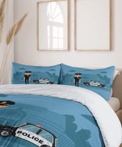 Hecho de microfibra cepillada al 100%, Este juego de funda nórdica Lunarable Police incluye 1 funda nórdica individual de 68″ X 88″ y 1 funda de almohada de 30″ X 20″. La funda nórdica tiene una cremallera oculta sin complicaciones y las fundas de almohada tienen cierres de sobre. Lavable a máquina en ciclo frío, seguro para secadora. Fácil de planchar. Excelente costura y mano de obra. No se desvanece. Impreso con tecnología digital de punta. La funda nórdica y las fundas de almohada están impresas solo en el lado delantero.