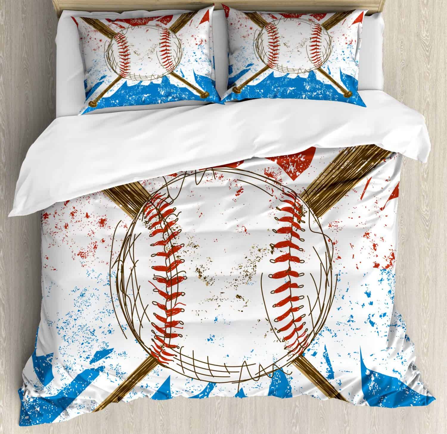 Juego de funda nórdica Lunarable Sports, con diseño de bates de béisbol dibujados a mano y pelota en un fondo de color degradado. Este juego de ropa de cama decorativa de 3 piezas incluye 1 funda nórdica Queen de 88″ X 88″ y 2 fundas de almohada de 30″ X 20″, el edredón no está incluido en el juego. Está fabricado en tela de microfibra cepillada al 100%, lo que lo hace súper suave para una comodidad óptima. Los colores e imagen son vibrantes y duraderos. La funda nórdica cuenta con una cremallera oculta sin problemas, mientras que las fundas de almohada tienen cierres de sobre. Es fácil de lavar a máquina en ciclo frío y apto para secadora. Se plancha fácilmente y su excelente costura y mano de obra garantizan que no se desvanezca. Con tecnología digital de última generación, la funda nórdica y las fundas de almohada están impresas solo en el lado frontal.