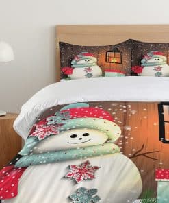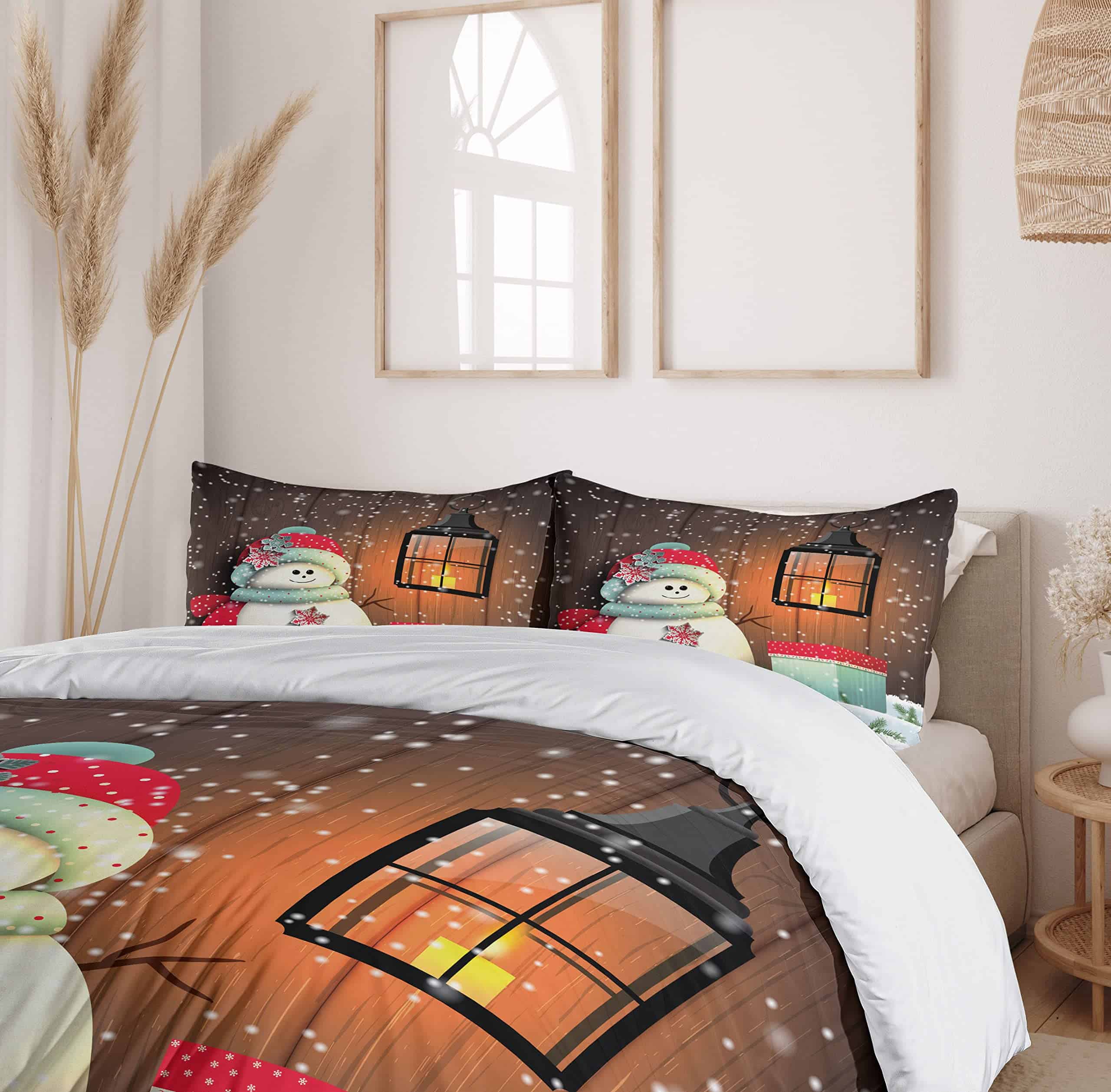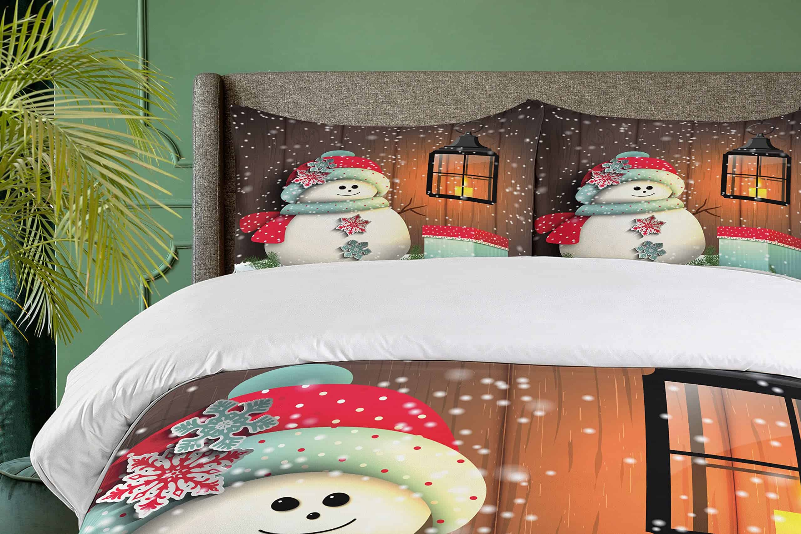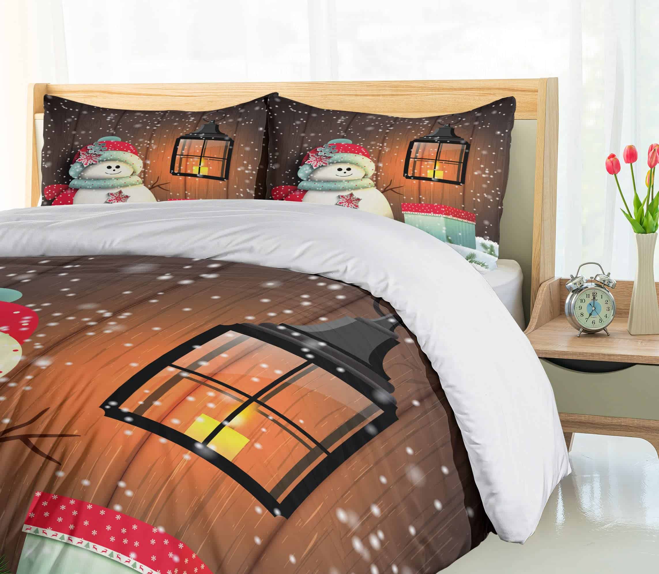Juego de funda nórdica navideña Ambesonne, Muñeco de Nieve