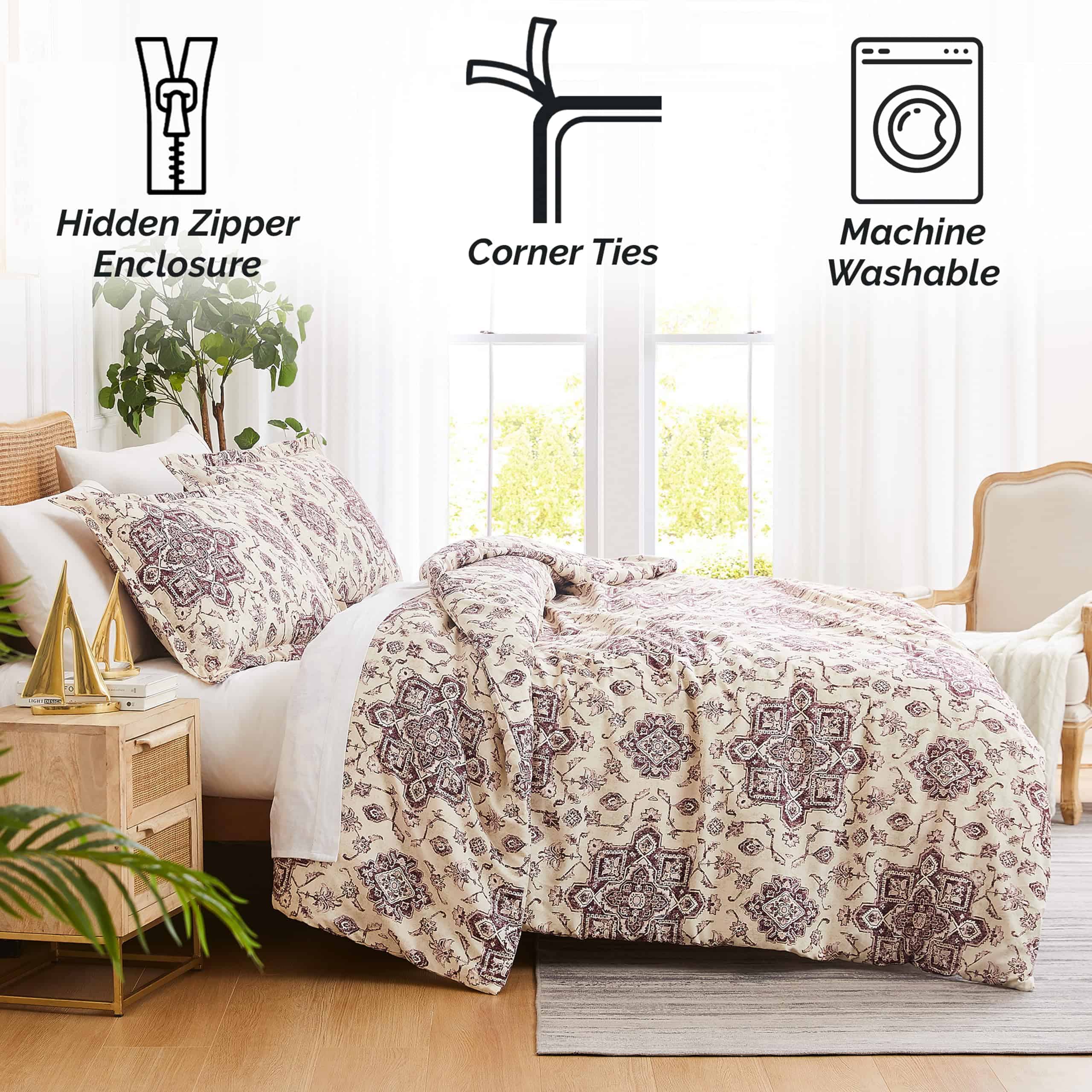 3. ESTILO QUE PERDURA – El juego de funda nórdica King/California King es resistente a la decoloración, por lo que mantiene sus hermosos colores lavado tras lavado. El cierre con cremallera y los 4 lazos en las esquinas aseguran el edredón en su lugar. ¡Por favor, cierra la cremallera antes de lavar!.