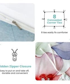 3. Colores Vívidos e Impresión de Calidad: Presenta colores claros y vibrantes gracias a la tecnología de impresión digital avanzada. El juego está diseñado para ser resistente a la decoloración e incluye ocho lazos en las esquinas para una sujeción segura de la funda nórdica. La cremallera de marca personalizada garantiza un acabado elegante y facilidad de uso.