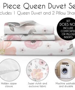 Diseño: Impresión bohemia de flores acuarela rosa, gris, blanco y gris, estilo farmhouse con rosa, lily. Este elegante diseño complementará cualquier dormitorio de tu hogar. Materiales y cuidado: Microfibra cepillada extremadamente suave y transpirable. Lavable a máquina. Secar en secarropas a baja temperatura. Características: Cierres de cremallera ocultos en la funda nórdica y la funda de almohada hacen que insertar y quitar el edredón y la almohada sea rápido y fácil. Accesorios a juego: Sweet Jojo Designs ofrece juegos de ropa de cama coordinados, almohadas decorativas, cortinas de baño, paneles de ventana, faldas de cama, almohadas corporales y más. Por favor, visite nuestra tienda para ver estos accesorios.
