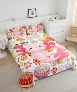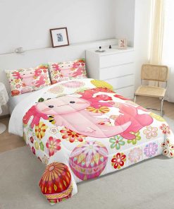Tamaño de edredón para cama individual 68″ de ancho x 90″ de largo y 1 funda de almohada 30″ de ancho x 20″ de largo. 2 piezas con 1 edredón y 1 funda de almohada en una bolsa
