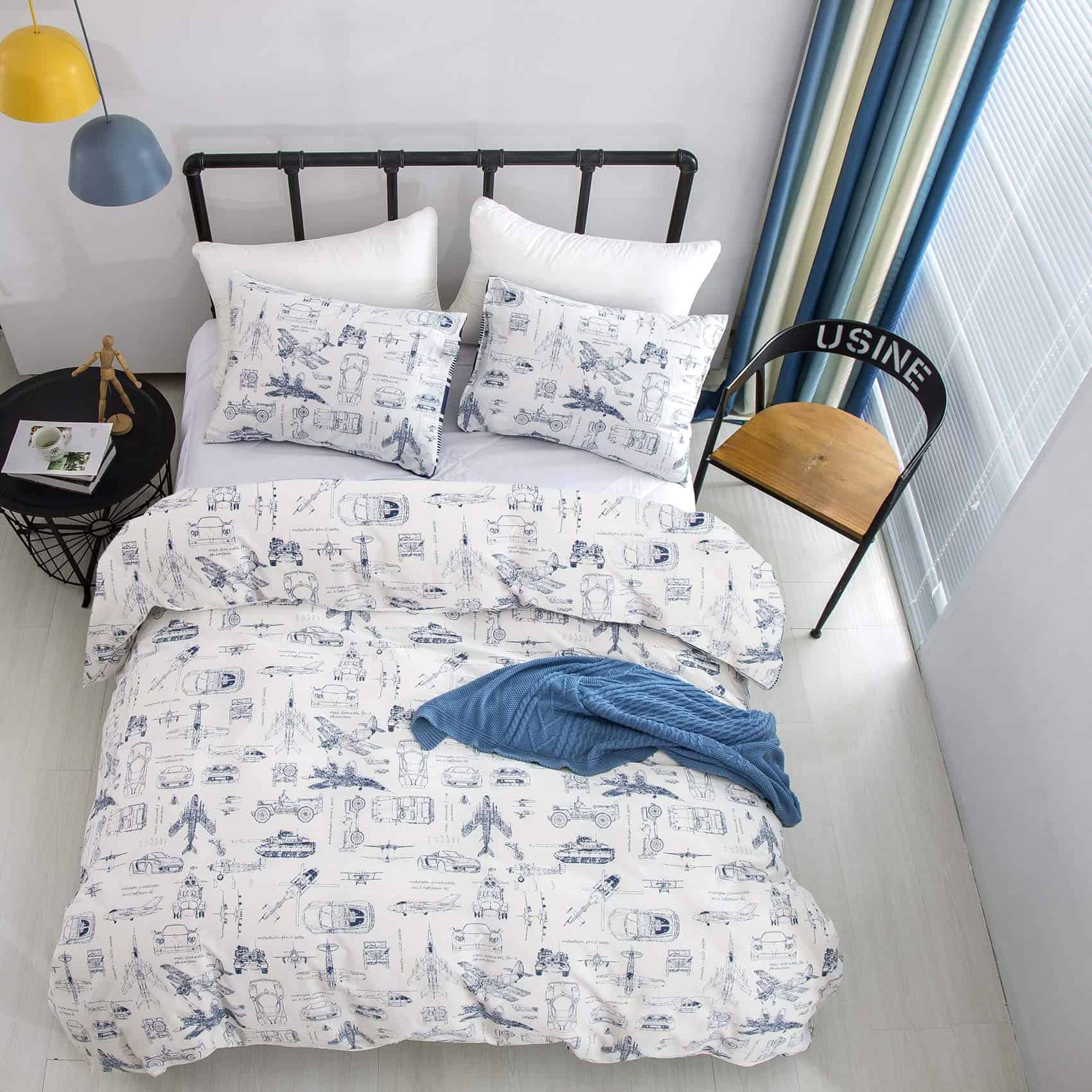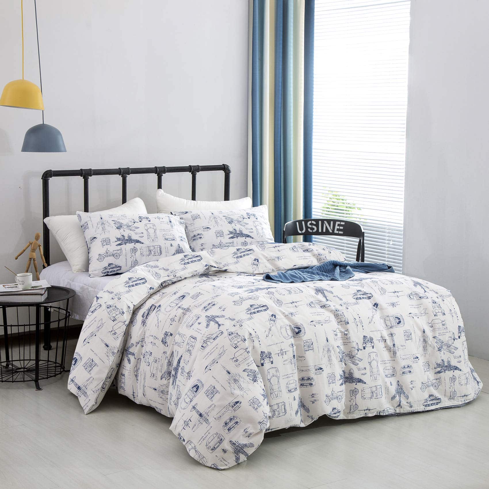 Diseño: El juego de ropa de cama es reversible. Ambos lados tienen figuras de palo de varios vehículos como aviones y autos, dándole a los niños la sensación de viajar alrededor del mundo conduciendo sus propios vehículos. Patrón azul y blanco, realizando el sueño naval de cada niño. Esta funda nórdica le permite dormir cómodamente por la noche sin preocuparse de los ojos llorosos o la nariz congestionada. Si desea un edredón, por favor busque Wellboo Edredón o B07Z36B9Y7.