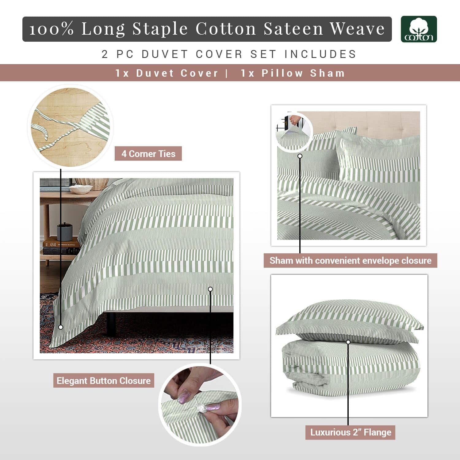 Juego de Funda Nórdica Pizuna Pure 100% -Verde rayas en casc