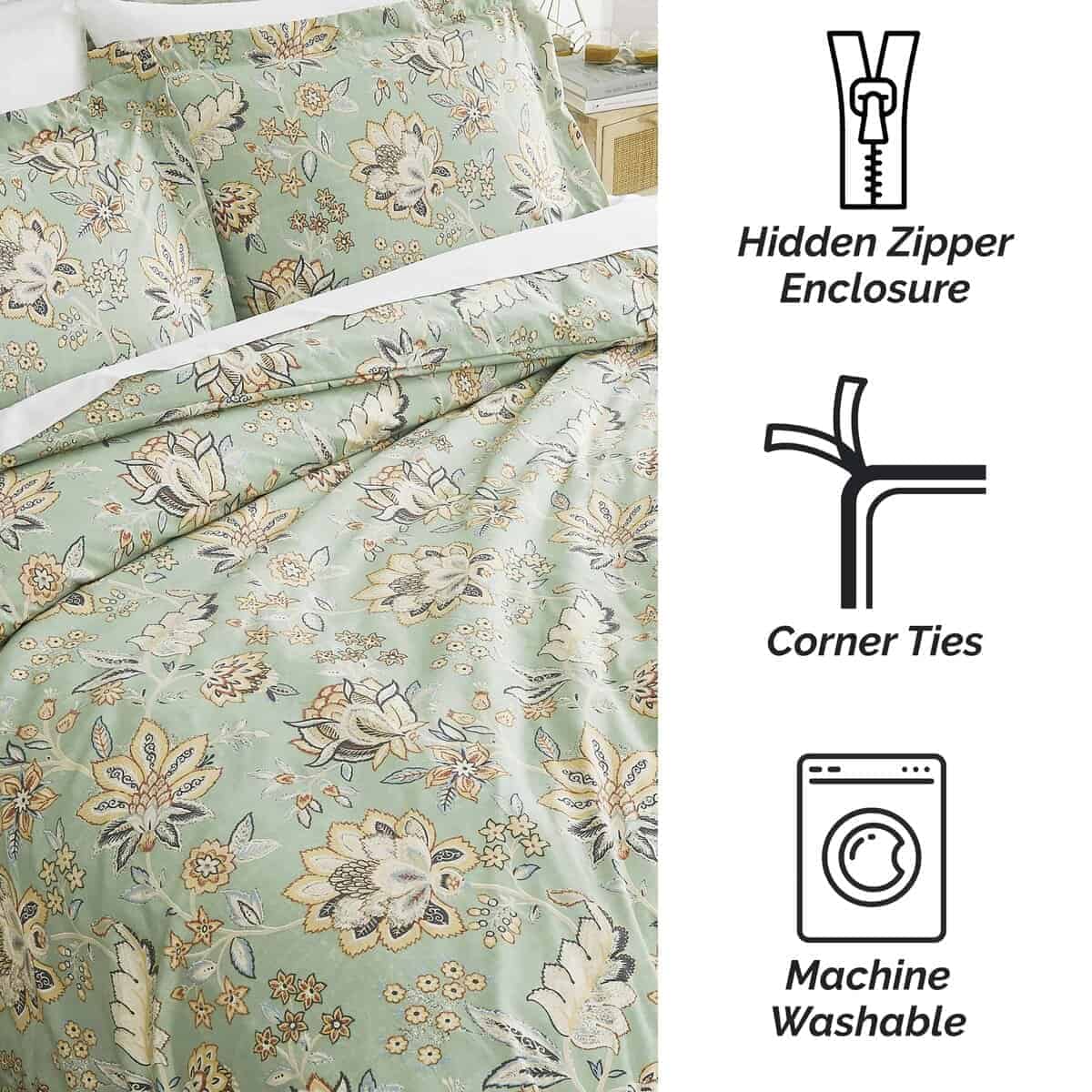4. QUÉ SE INCLUYE: Una Funda nórdica Queen tamaño extragrande 98″x98″ y 2 Fundas de Almohada 20″x26″. Esta colcha queen garantiza una cobertura completa y comodidad con una cremallera oculta y cuatro lazos en las esquinas para mantener tu relleno seguro en su lugar para un sueño reparador.