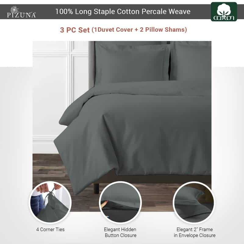 1. Fresco, Aireado y Suave: Hecho de algodón peinado de fibra larga 100% en un tejido de percal fresco, este juego de tamaño queen de 210 hilos está diseñado para ser poroso y cómodo. Su textura ligera ofrece un toque suave a tu piel. La técnica de hilado compactado y el mínimo procesamiento artificial promueven una ultra transpirabilidad, evitan el sudor y absorben la humedad, ayudándote a mantenerte fresco durante toda la noche manteniendo un aspecto elegante de hotel. 2. Diseño Minimalista con Ajuste Inteligente: El cierre de botón oculto y las 4 correas en las esquinas brindan un ajuste seguro e inteligente, evitando que el edredón o la funda nórdica se amontonen en el interior. El juego incluye una funda nórdica de percal (90 x 90 ) y 2 fundas de almohada con elegantes faldones y cierre de sobre conveniente (20 x 26 ). 3. 100% Algodón Combed Mercerizado Puro y Natural: Hecho con la técnica de hilo fino de Pizuna, este auténtico juego de funda nórdica queen de 210 hilos presenta un tejido percal de una sola muesca de 1 sobre 1 bajo cuadrado. El algodón peinado mercerizado hace que esta funda nórdica de algodón queen sea suave, fuerte y nítida. La ropa de cama de algodón puro y natural se arruga, pero con cada lavado, la tela se suaviza y las arrugas disminuyen, asegurando confort a largo plazo. 4. Estándar de Calidad Pizuna: Inspecciones rigurosas y revisiones pieza por pieza son realizadas por el equipo de garantía de calidad en Pizuna. Esta funda nórdica de algodón percal está certificada por OEKO-TEX y AZO (2024), libre de sustancias sintéticas y respetuosa con el planeta, haciéndola calmante incluso para la piel más delicada. 5. Indulge con Responsabilidad: Estos juegos de funda nórdica tamaño queen son conforme a BSCI, socialmente responsables y respetuosos con el medio ambiente. El uso de materiales reciclados para el embalaje puede añadir un olor desagradable que desaparece después del primer lavado con agua tibia. Con tintes resistentes a la decoloración, es apta para lavar a máquina en ciclo suave y secar a baja temperatura. El uso de lejía puede afectar los colores. 6. Diseñado para un Mejor Sueño: Nuestros expertos en sueño internos estudian el comportamiento y los patrones de sueño del usuario, lo que resulta en una mejoría del producto y un embalaje compacto. Disponible globalmente en múltiples colores y tamaños, convierte estos juegos de ropa de cama de algodón en la opción de regalo perfecta para tus seres queridos.