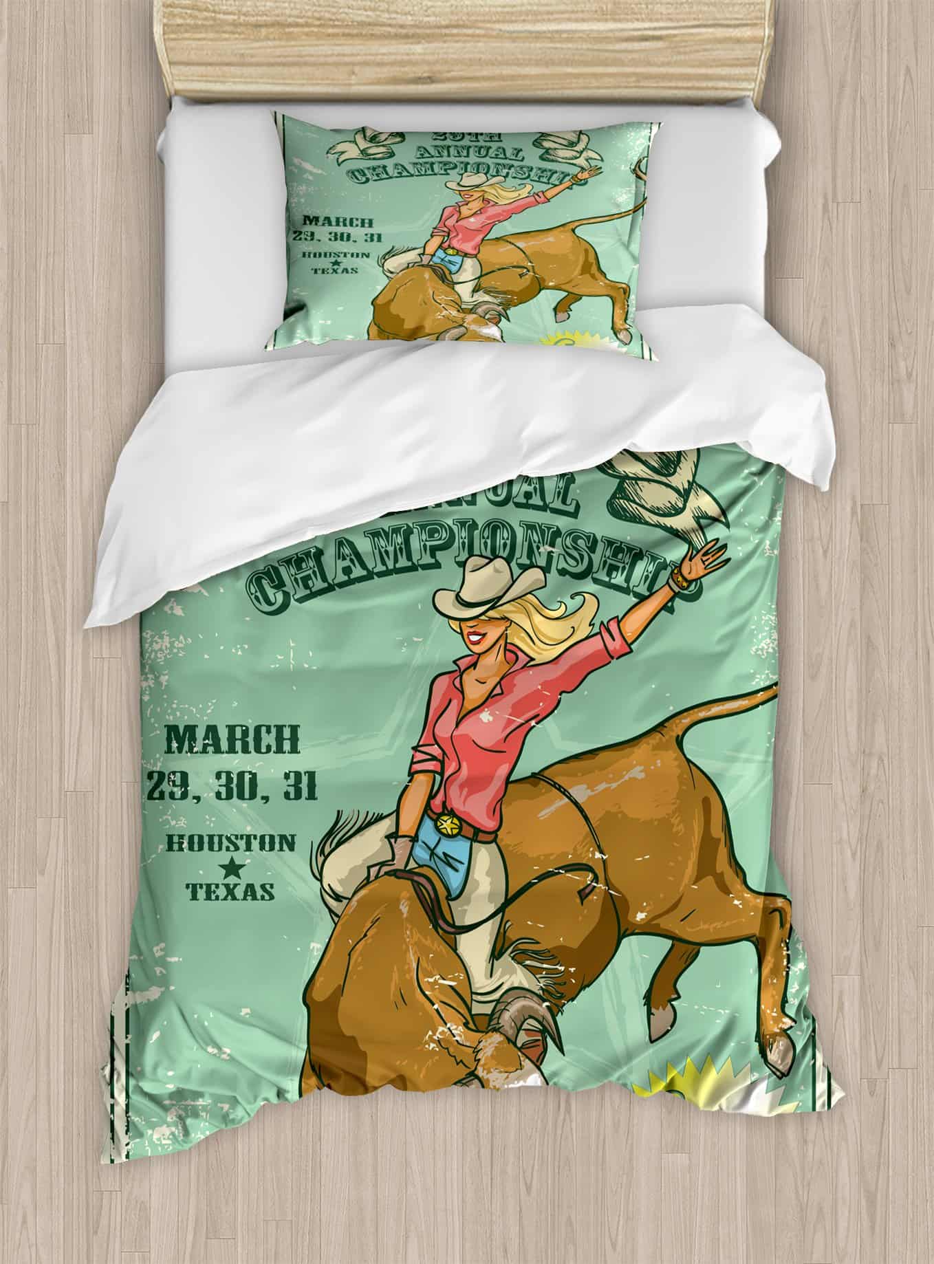 Juego de Funda nórdica Retro de Ambesonne, Vaquera en el