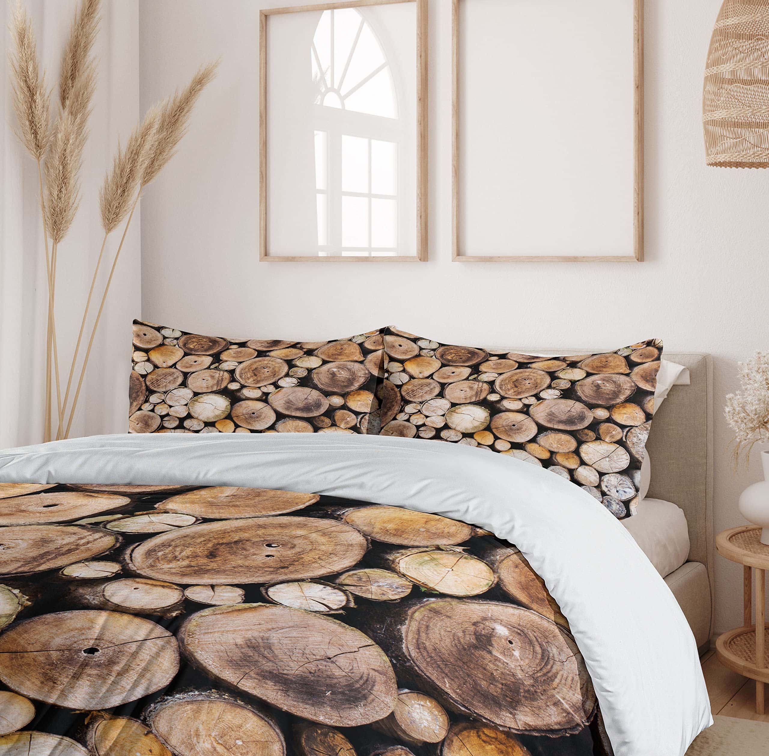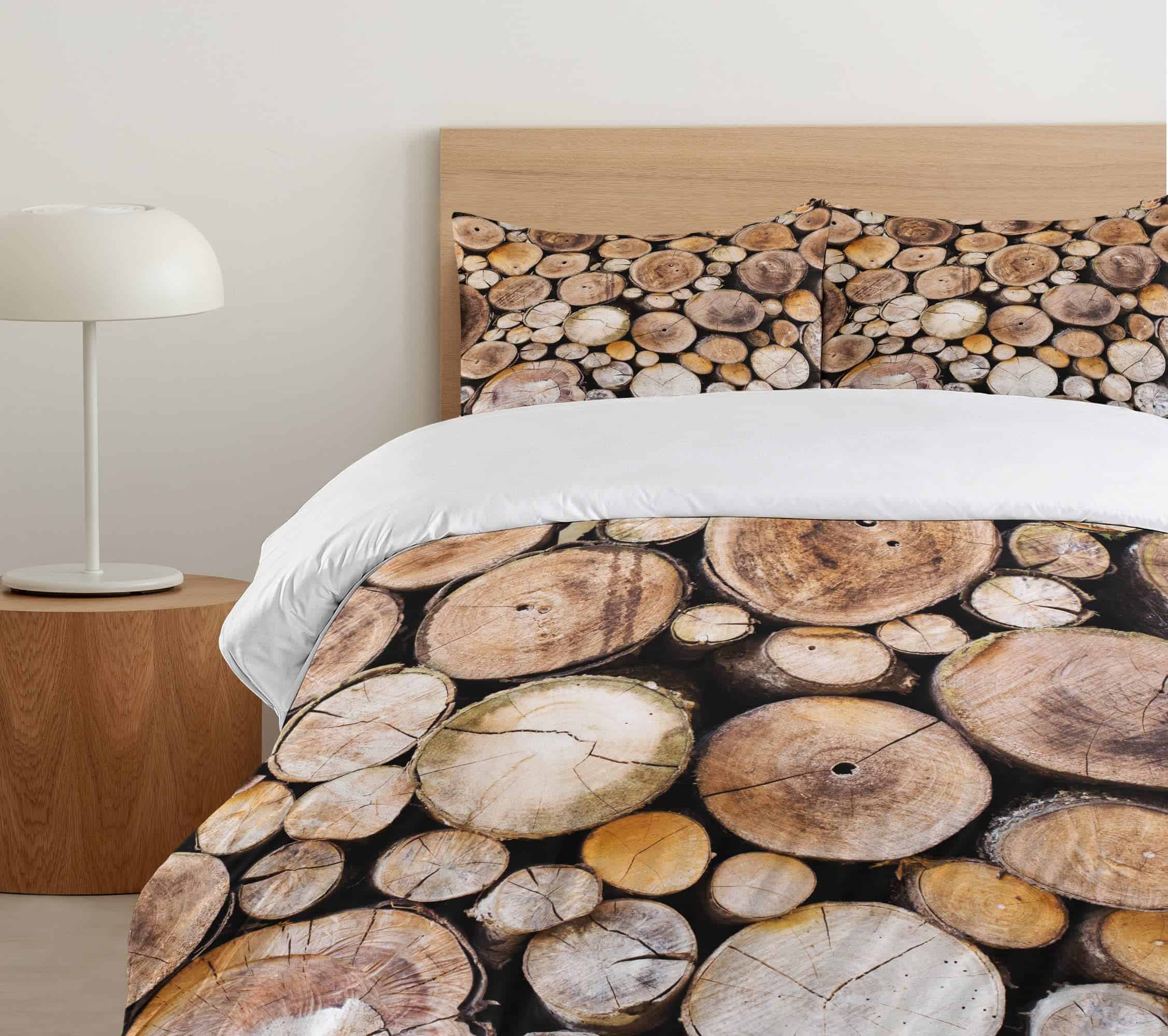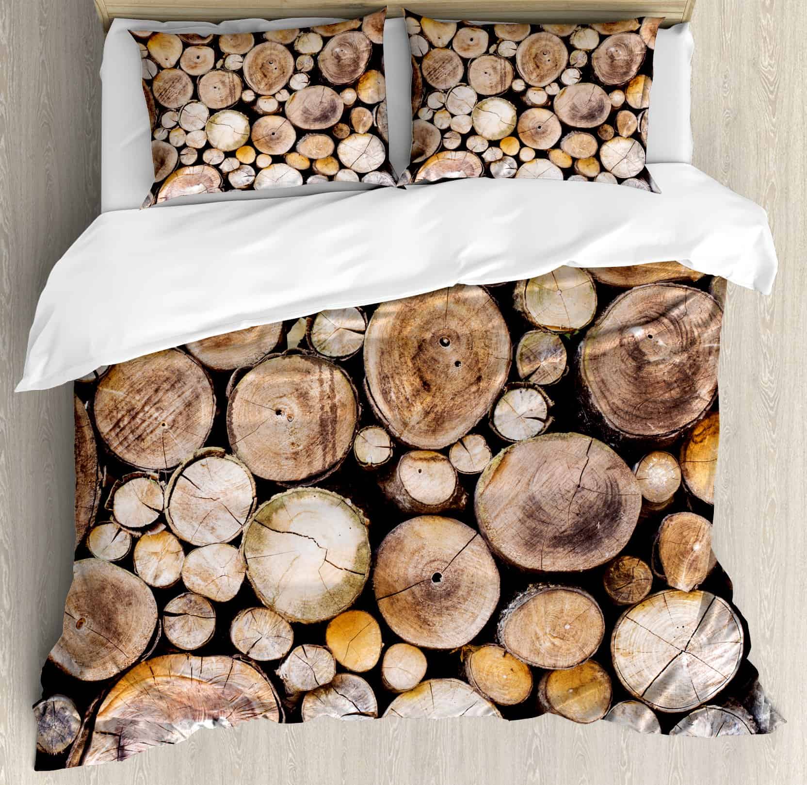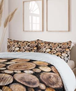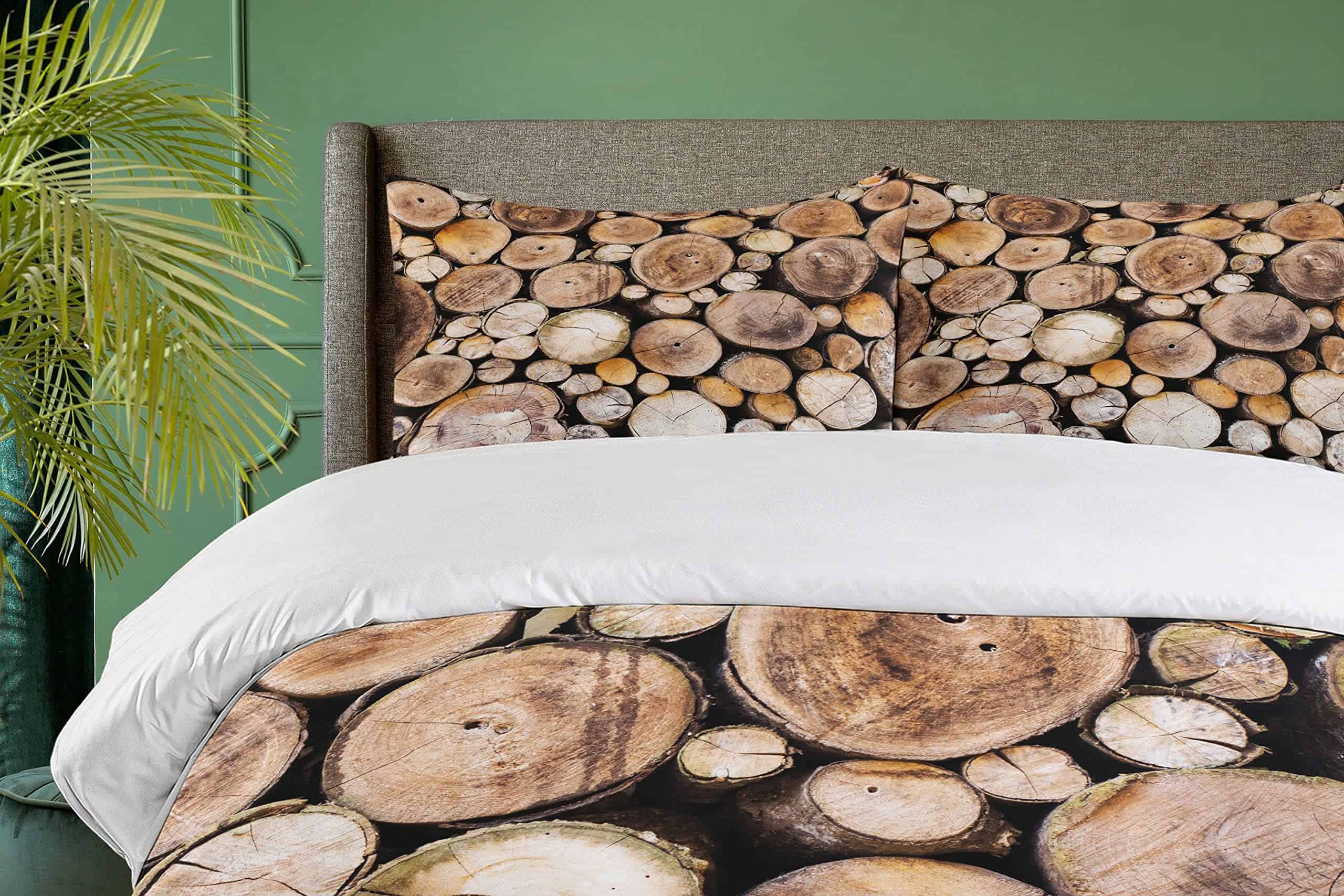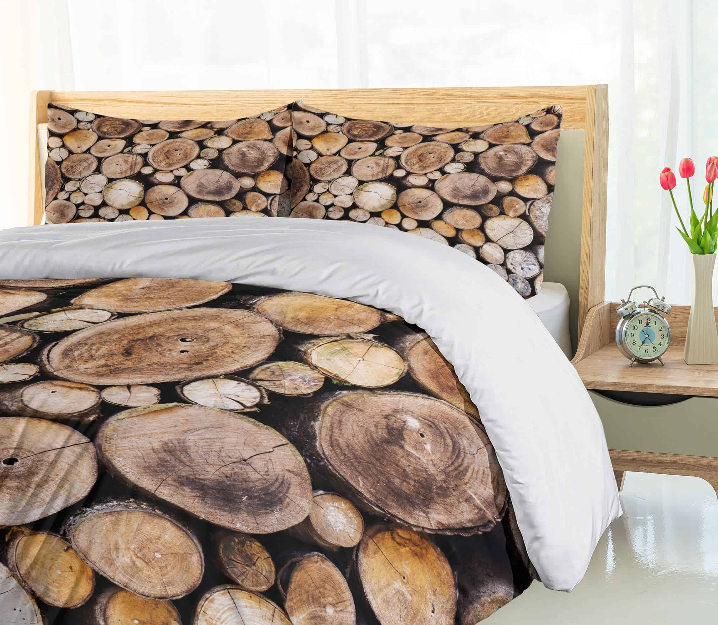 Juego de Funda Nórdica Rústica Ambesonne, Fondo de Troncos