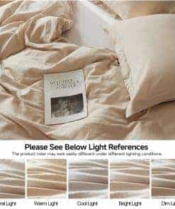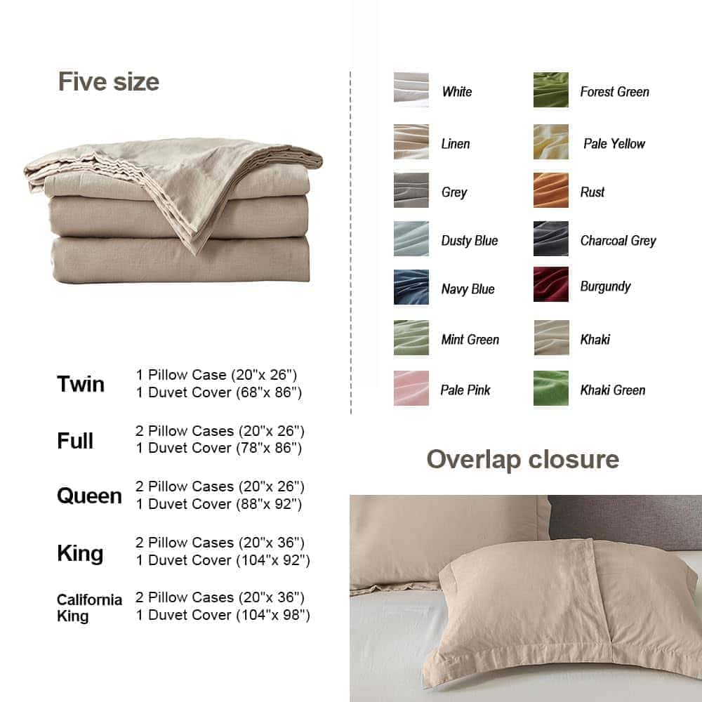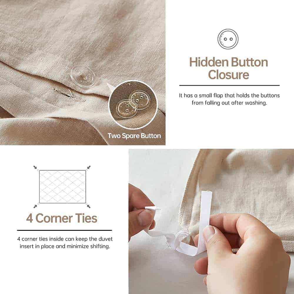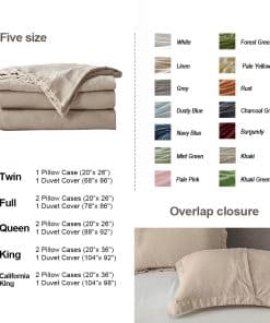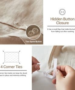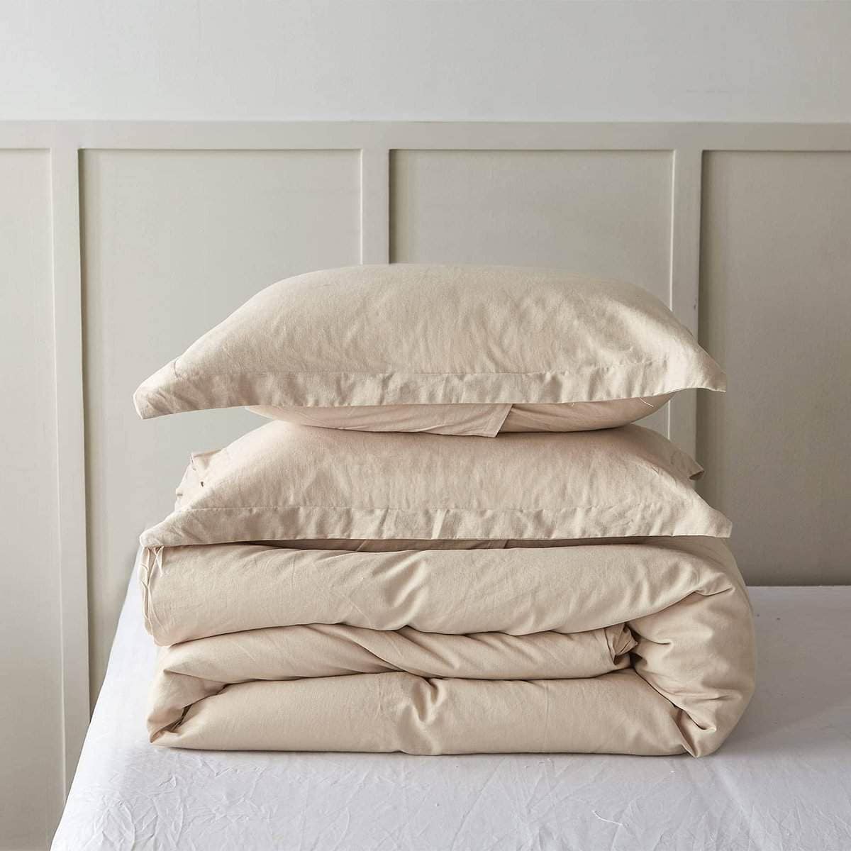 El lujoso juego de funda nórdica de lino mezclado está hecho de una mezcla de 55% de lino y 45% de algodón. Nuestra funda de lino de lujo conserva la rica textura del lino con un toque suave y estilo lavado. Tiene una mejor absorción de humedad y transpirabilidad que el tejido de algodón, lo que garantiza que te sientas fresco en verano y cálido en invierno. Es adecuado para todas las estaciones, haciendo que tu entorno de sueño sea muy cómodo. Se vuelve más suave con cada lavado. No es fácil de encoger y desvanecer. Material certificado OEKO-Tex.
