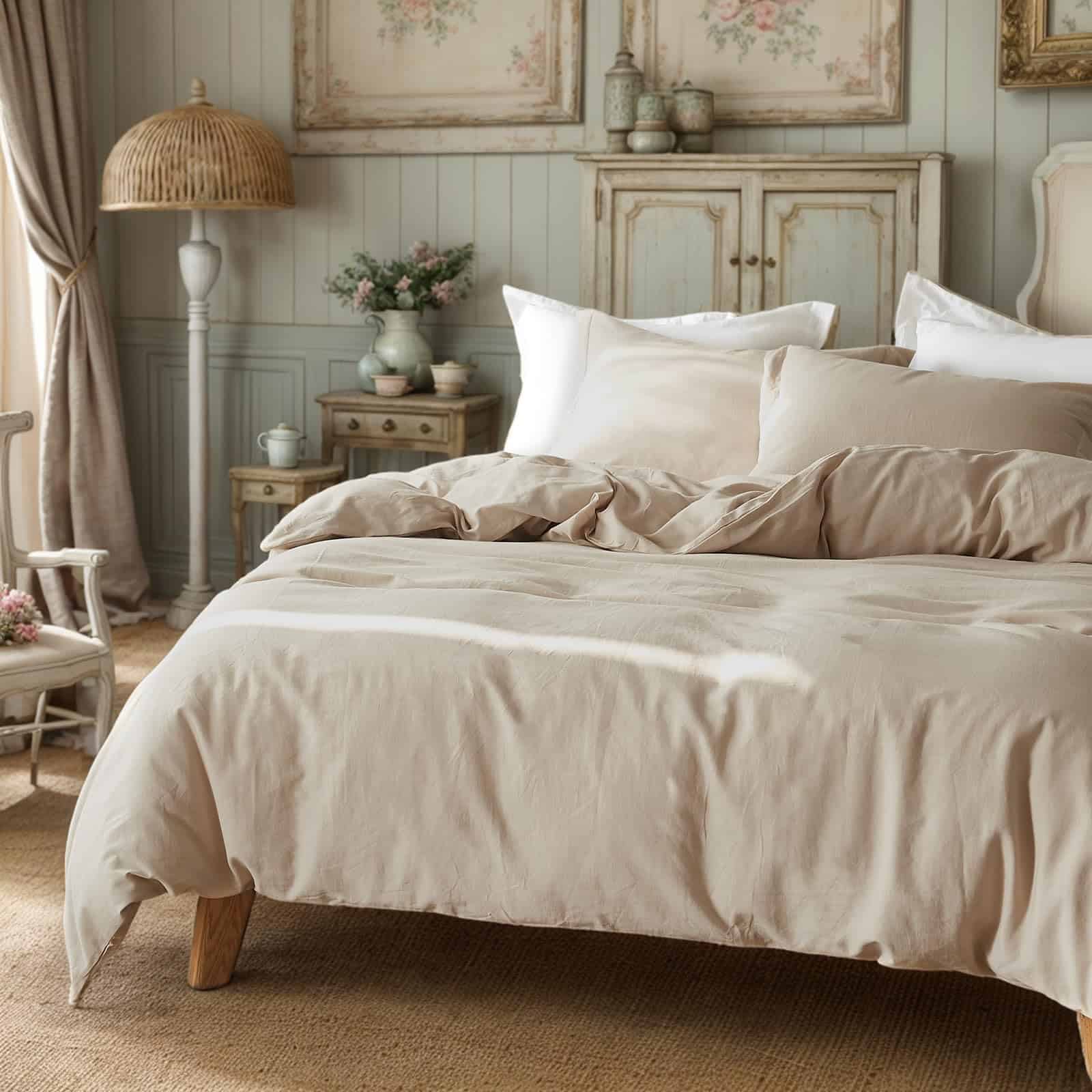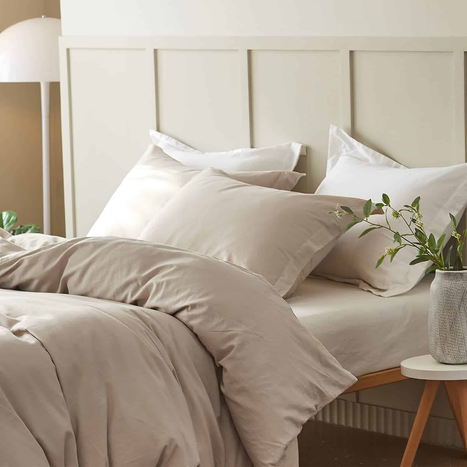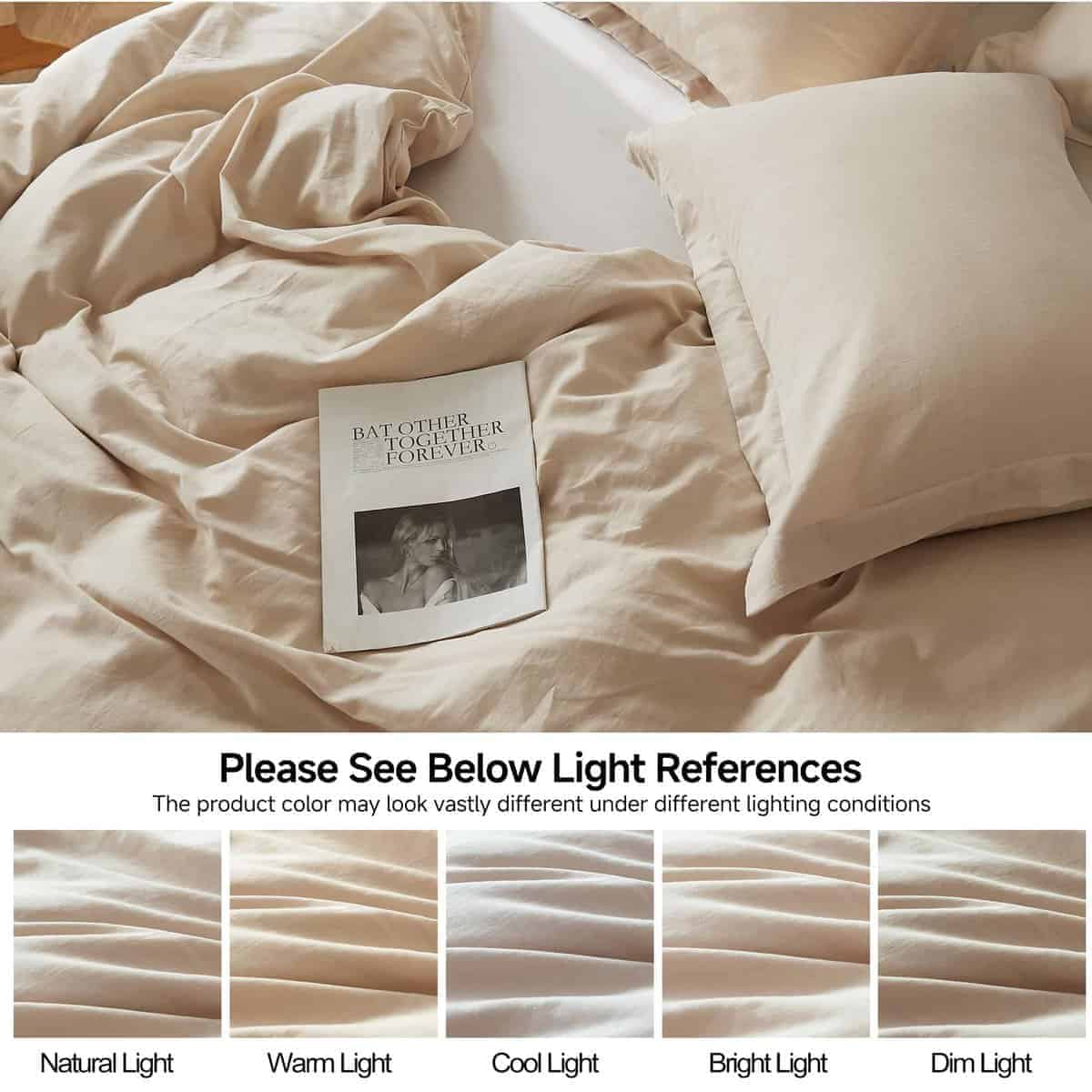 El lujoso juego de funda nórdica de lino mezclado está hecho de una mezcla de 55% de lino y 45% de algodón. Nuestra funda de lino de lujo conserva la rica textura del lino con un toque suave y estilo lavado. Tiene una mejor absorción de humedad y transpirabilidad que el tejido de algodón, lo que garantiza que te sientas fresco en verano y cálido en invierno. Es adecuado para todas las estaciones, haciendo que tu entorno de sueño sea muy cómodo. Se vuelve más suave con cada lavado. No es fácil de encoger y desvanecer. Material certificado OEKO-Tex.