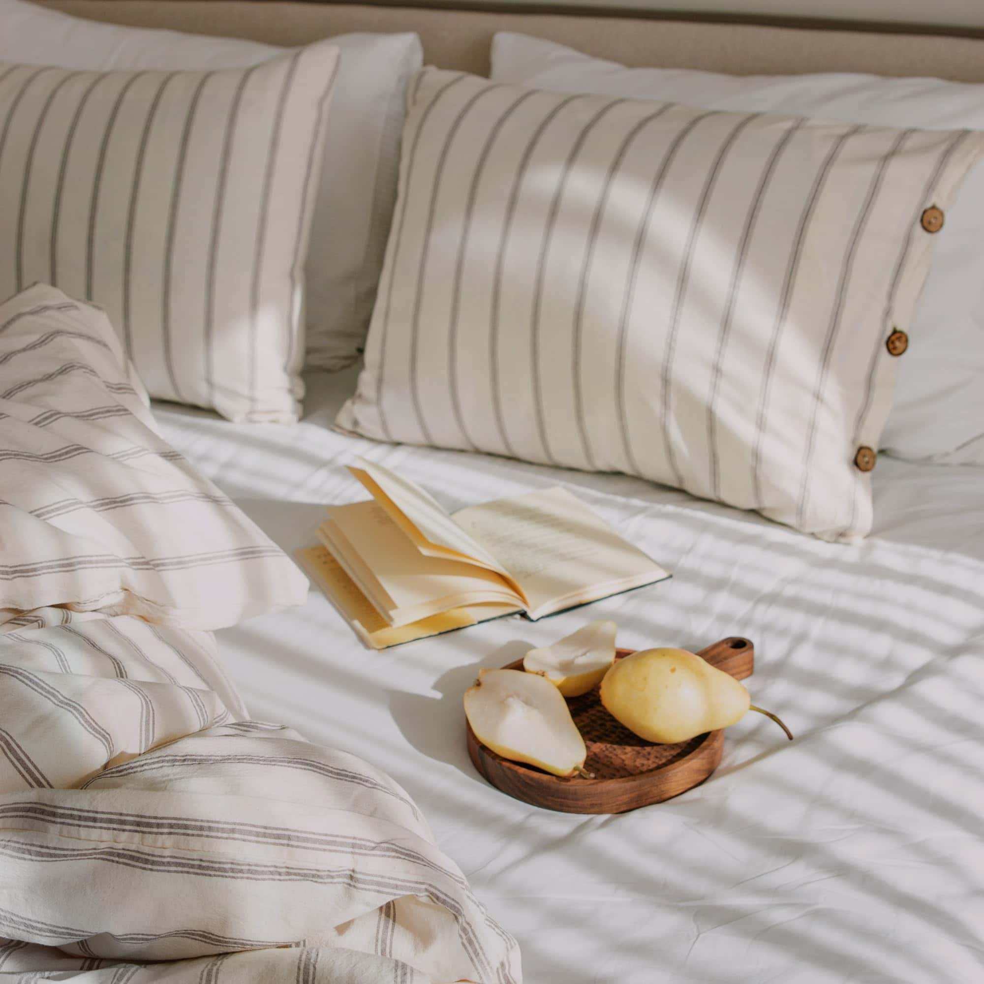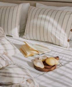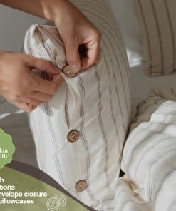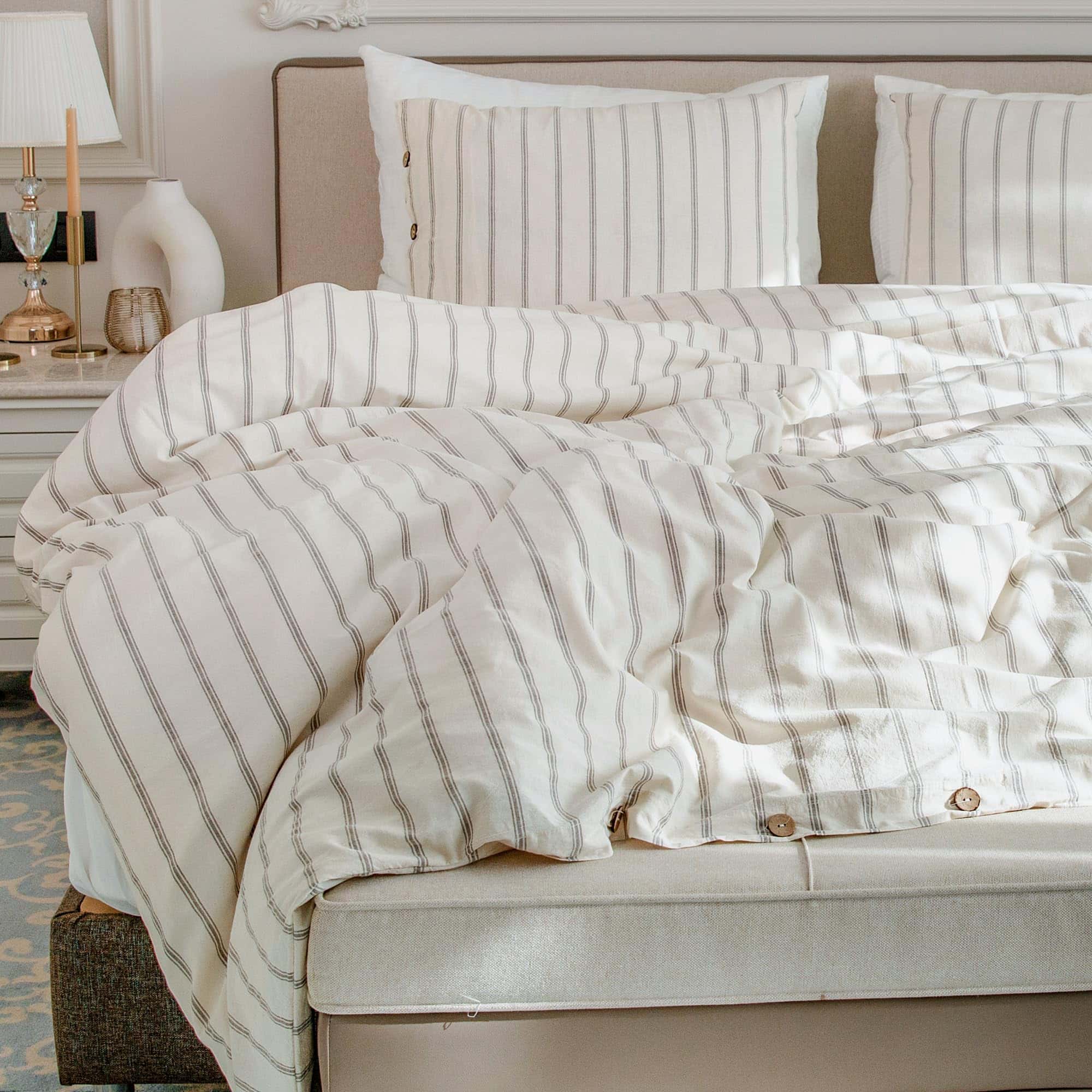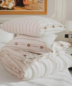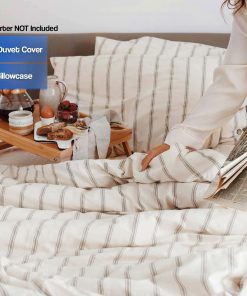 1. Juego de Cama Twin Size – 2 Piezas: 1 funda nórdica (68″ de ancho x 90″ de largo); 1 funda de almohada (20″ de ancho x 26″ de largo). No incluye el edredón. 2. 100% Algodón Natural: Hecho de algodón transpirable de alta calidad para una experiencia suave y amigable con la piel. Este tejido ligero ofrece confort durante todo el año con una sensación lujosa y duradera. 3. Diseño de Rayas Clásico: Presenta un patrón de rayas blanco y gris clásico que complementa perfectamente la decoración de dormitorio moderna, minimalista o tradicional, añadiendo elegancia a tu espacio. 4. Regulación Térmica (4 Estaciones): Diseñado para uso durante todo el año, este tejido de algodón transpirable regula la temperatura de forma natural, manteniéndote fresco en verano y cálido en invierno. 5. Cierre de Botón de Coco y 4 Lazos: Cuenta con un cierre de botón de coco natural para un toque elegante y ecológico. Cuatro lazos internos en las esquinas aseguran de manera segura tu funda nórdica en su lugar, garantizando un aspecto ordenado y suave toda la noche. 6. Fácil Cuidado: Lavable a máquina para un mantenimiento sin esfuerzo. Resistente a la decoloración, contracción y formación de bolitas, asegurando calidad duradera y un aspecto fresco después de cada lavado.