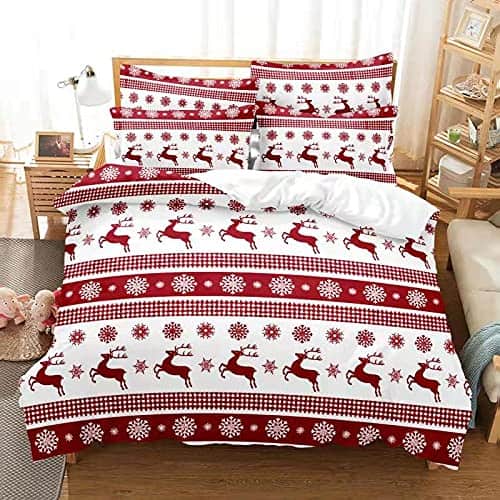 3. Estilo Navideño – Estos conjuntos de fundas de cama son de estilo navideño, lo que puede mejorar la atmósfera festiva. Es una gran opción de regalo para amigos, familiares y niños y para ti mismo como regalos de Navidad.