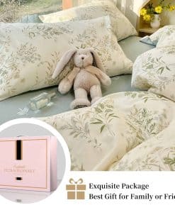 Este juego de funda nórdica tamaño Queen incluye una funda nórdica de 90″ por 90″, una sábana ajustable de 80″ por 60″ con bolsillo profundo (10″ – 16″) y dos fundas de almohada de 28″ por 20″, proporcionando una capa protectora y decorativa para tu edredón o inserto de edredón (no incluido).
