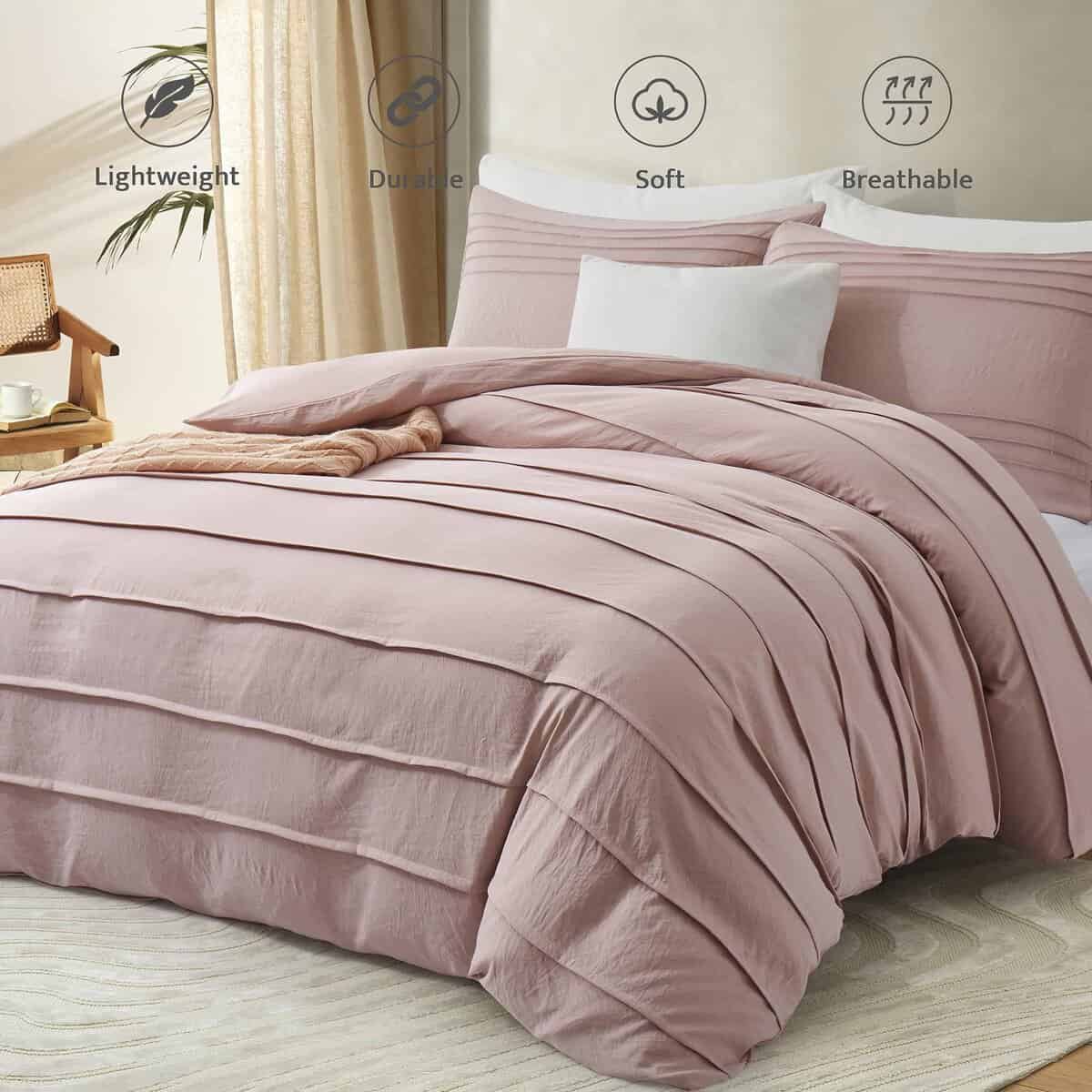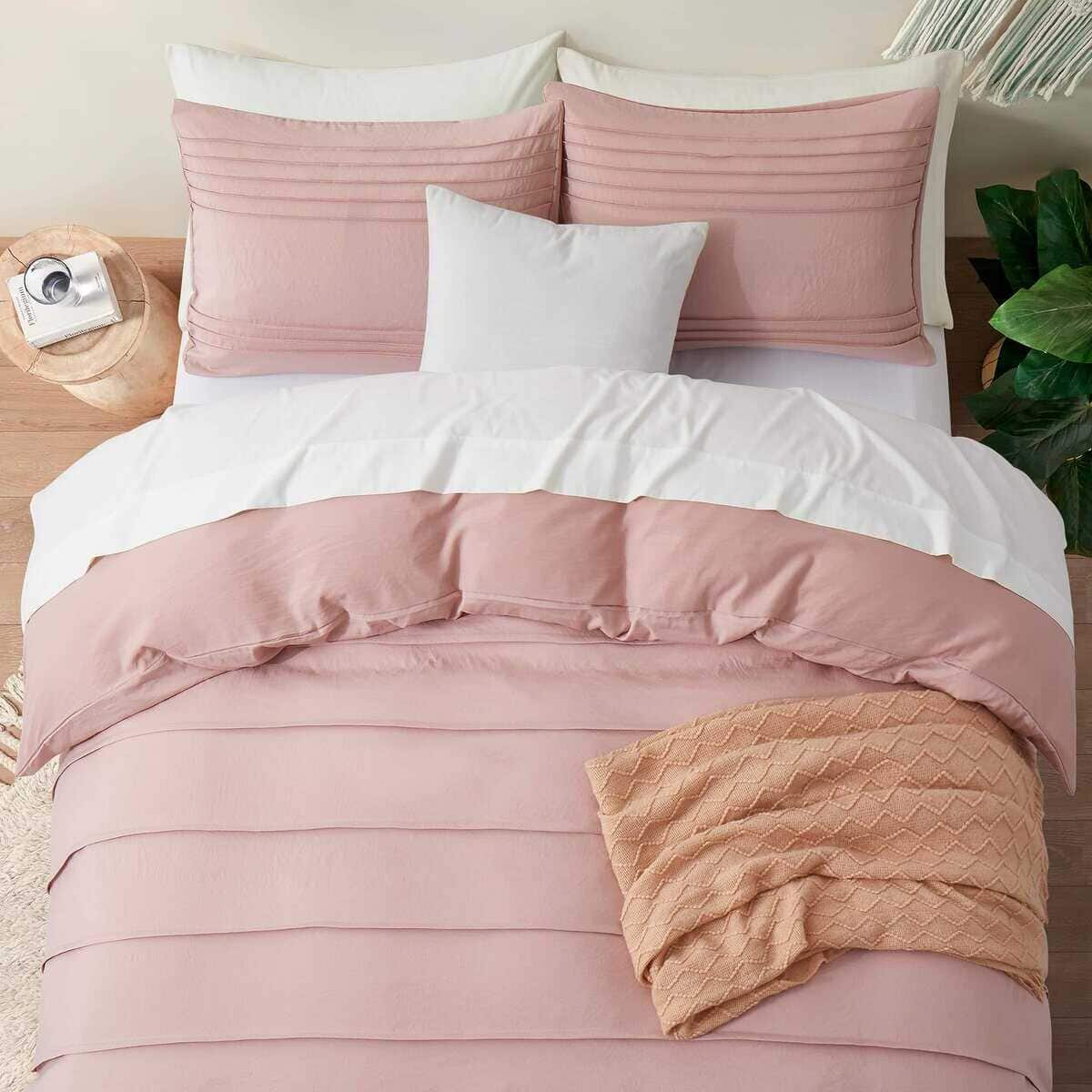 La fantástica funda de edredón Oli Anderson Misty Rose ofrecerá a tu dormitorio un toque elegante y acogedor. Con un diseño plisado y texturizado en un hermoso tono rosa neblina, esta funda de edredón de alta calidad es perfecta para darle un aire fresco y actual a tu espacio. Hecha de 100% microfibra de primera calidad, esta ropa de cama no solo es suave al tacto, sino que también es transpirable para garantizarte un sueño cómodo y placentero en cualquier temporada. Los 8 lazos incluidos mantienen el edredón seguro dentro de la funda, mientras que la cremallera oculta facilita la colocación y extracción del edredón. Disponible en tamaño queen, este juego de funda de edredón incluye 2 fundas de almohada a juego para completar tu look de cama elegante y acogedor. No incluye edredón ni almohada. Dale a tu dormitorio un toque de distinción con la funda de edredón Oli Anderson Misty Rose, ¡te encantará la sensación de lujo y comodidad que proporciona!
