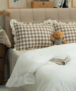 Juego de Fundas de Almohada GLORY SEASON Set de 2 de Algodón Puro Teñido con Hilos Retros Coquetos Ribetes de Volantes a Cuadros Marrón Fundas de Almohada Decorativas para Decoración del Hogar Dormitorio. Tela de cuadros marrón y blanco de alta calidad con un borde de volantes vintage, estilo romántico victoriano rústico, que hacen que las fundas de almohada sean más naturales y elegantes. La tela pesada y densa, la costura exquisita, el cierre de sobre, hacen que la funda sea más confiable y conveniente para usar en todas las estaciones, y harán que tu sueño sea más agradable y cómodo. La comodidad serena y relajante ofrece una forma elegante de actualizar tu hogar.