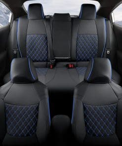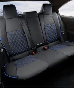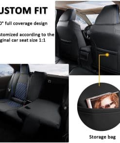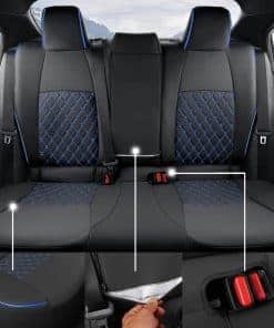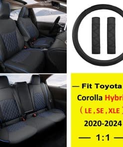Juego completo de fundas de asiento para automóvil GIANT PANDA personalizadas para Toyota Corolla Híbrido 2020 2021 2022 2023 2024. Este juego de fundas de asiento está diseñado para adaptarse perfectamente al asiento original de su Toyota Corolla Híbrido, proporcionando una solución perfecta y rentable para actualizar el interior de su vehículo. Las fundas están fabricadas en cuero suave, que es cómodo al tacto, transpirable, duradero, resistente al agua y fácil de limpiar. Protegen los asientos originales del desgaste, las manchas y el pelo de los animales, al mismo tiempo que le dan a su interior un aspecto nuevo y elegante. El diseño acolchado en forma de diamante en ambas fundas delanteras y traseras crea una rica visión tridimensional, mientras que las costuras decorativas añaden un toque de estilo simple y elegante que se integra perfectamente con el interior de su coche. Para una instalación sencilla, las fundas de asiento personalizadas de GIANT PANDA cuentan con solapas, velcro, hebillas resistentes y correas para un ajuste más seguro y fácil. Antes de la instalación, por favor, vea el video de instrucciones para asegurar un ajuste perfecto y una instalación sin problemas.