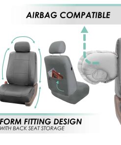 ¡FH Group te tiene cubierto! Nuestras fundas premium para asientos de automóvil no solo proporcionan la mejor protección para la tapicería de tu automóvil contra todo tipo de desorden, sino que también realzan la apariencia del interior de tu automóvil. Ya no hay necesidad de preocuparte por derrames, manchas, barro o cualquier cosa que dañe los asientos originales de tu automóvil porque este protector de asiento para automóvil tiene tu respaldo. Cada funda para asiento de automóvil que fabricamos está hecha con materiales de calidad y duraderos que protegerán la tapicería de tu automóvil en todo momento. Ofrecemos fundas para asientos de automóvil en numerosos tejidos, colores y diseños, para que puedas encontrar fácilmente la funda de asiento para automóvil que se adapte más a tu estilo. Tenemos fundas para asientos de automóvil para mujeres, para hombres y para todos. Nuestras fundas para asientos de automóvil son compatibles con la mayoría de los asientos delanteros de sedanes, SUVs y furgonetas gracias al diseño universal de funda para asiento bajo que brinda el ajuste ceñido que estás buscando, solo si el reposacabezas de los asientos delanteros es extraíble. Además, porque la seguridad es uno de nuestros principales objetivos, este juego delantero de fundas para asientos de automóvil es compatible con airbag (¡probado oficialmente!). Entendemos que los desordenes suceden, es por eso que estas fundas impermeables para asientos de automóvil son convenientes para cualquier tipo de conductor. Las fundas para asientos de automóvil de FH Group son un gran accesorio para el interior de tu vehículo. ¡Tenemos todo: fundas para asientos de SUV, fundas para asientos de autos, fundas para asientos de furgonetas, lo que sea!