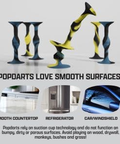 3. DÓNDE PUEDO JUGAR Nuestros sets compactos se pueden jugar donde quieras, tanto en interiores como en exteriores. ¡Los Popdarts se adhieren mejor a superficies lisas como una encimera, refrigerador, ventana, parabrisas de automóvil, puerta de vidrio, tabla de surf – sé creativo!.