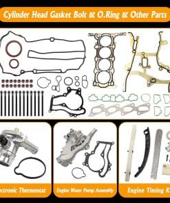 Utilizando tecnología de fabricación avanzada para garantizar su durabilidad, no es fácil de romper. El paquete incluye: Sello del Árbol de Levas Delantero, O-rings, Otras Pequeñas Juntas. Juego de Gasket de Culata de Acero de Múltiples Capas (MLS), Sellos de Vástago de Válvula, Junta del Múltiple de Admisión, Junta del Múltiple de Escape, Junta de Tapa de Válvula, Kit Profesional de Bomba de Agua de Vivienda de Termostato. Nota: Si tiene alguna pregunta después de recibir el producto, por favor contáctenos.