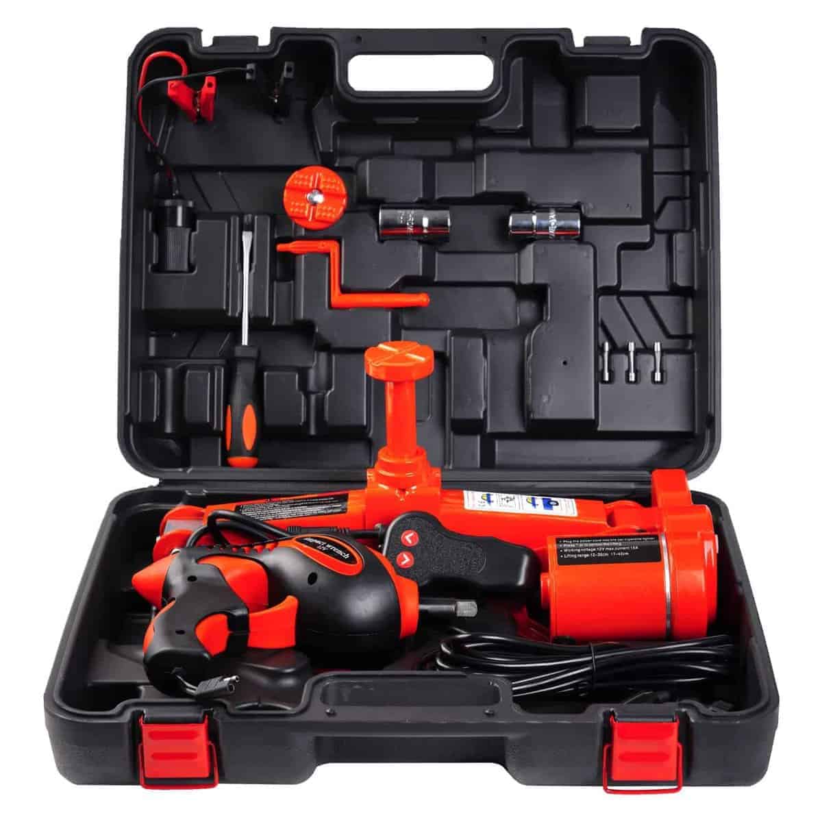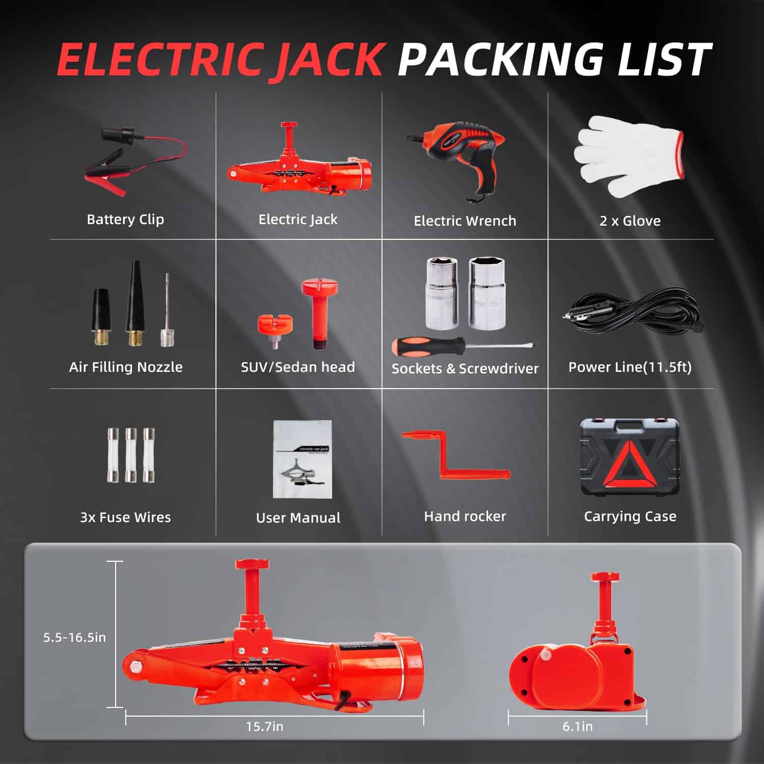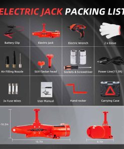 Este juego de gato eléctrico todo en uno de STANDTALL es la solución perfecta para cambiar las llantas de tu automóvil de manera segura y eficiente. Con una capacidad de 3 toneladas, este gato eléctrico es ideal para sedanes y SUV (menores de 3T). Construido con acero resistente, cuenta con una base triangular para proporcionar estabilidad adicional. La función de parada automática garantiza la seguridad al alcanzar la altura límite. El gato eléctrico puede ser alimentado a través del encendedor de 12V de tu vehículo, lo que lo hace conveniente y fácil de usar. Además, la linterna LED incorporada ofrece mayor visibilidad en situaciones de emergencia en la carretera. Con un tiempo de elevación de solo 2 minutos y una llave de impacto eléctrica mejorada, este gato eléctrico te permite realizar cambios de llantas rápidos y eficientes. El juego incluye un maletín resistente y organizado que contiene todos los accesorios necesarios, asegurando que todo esté en su lugar y listo para usar en tu vehículo.