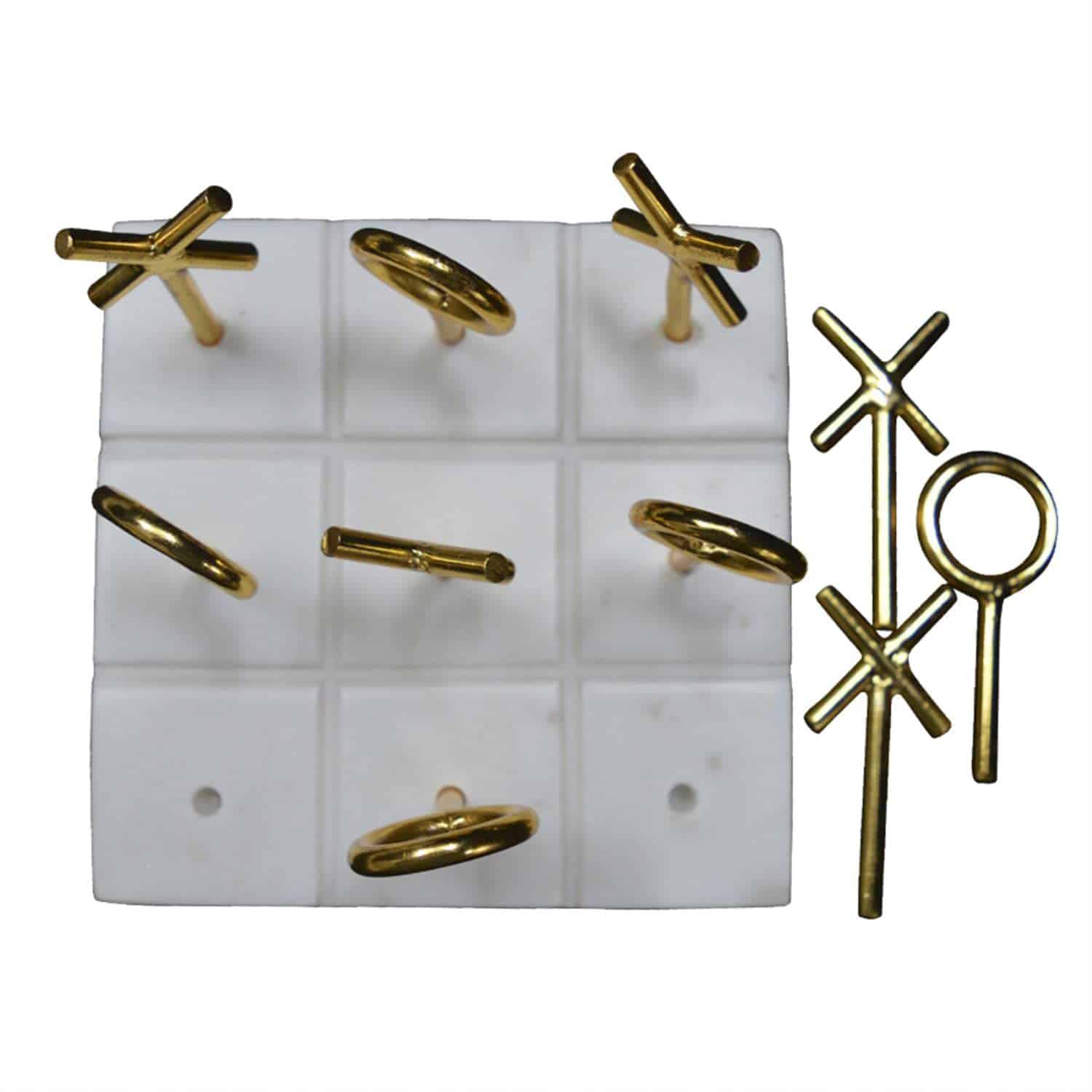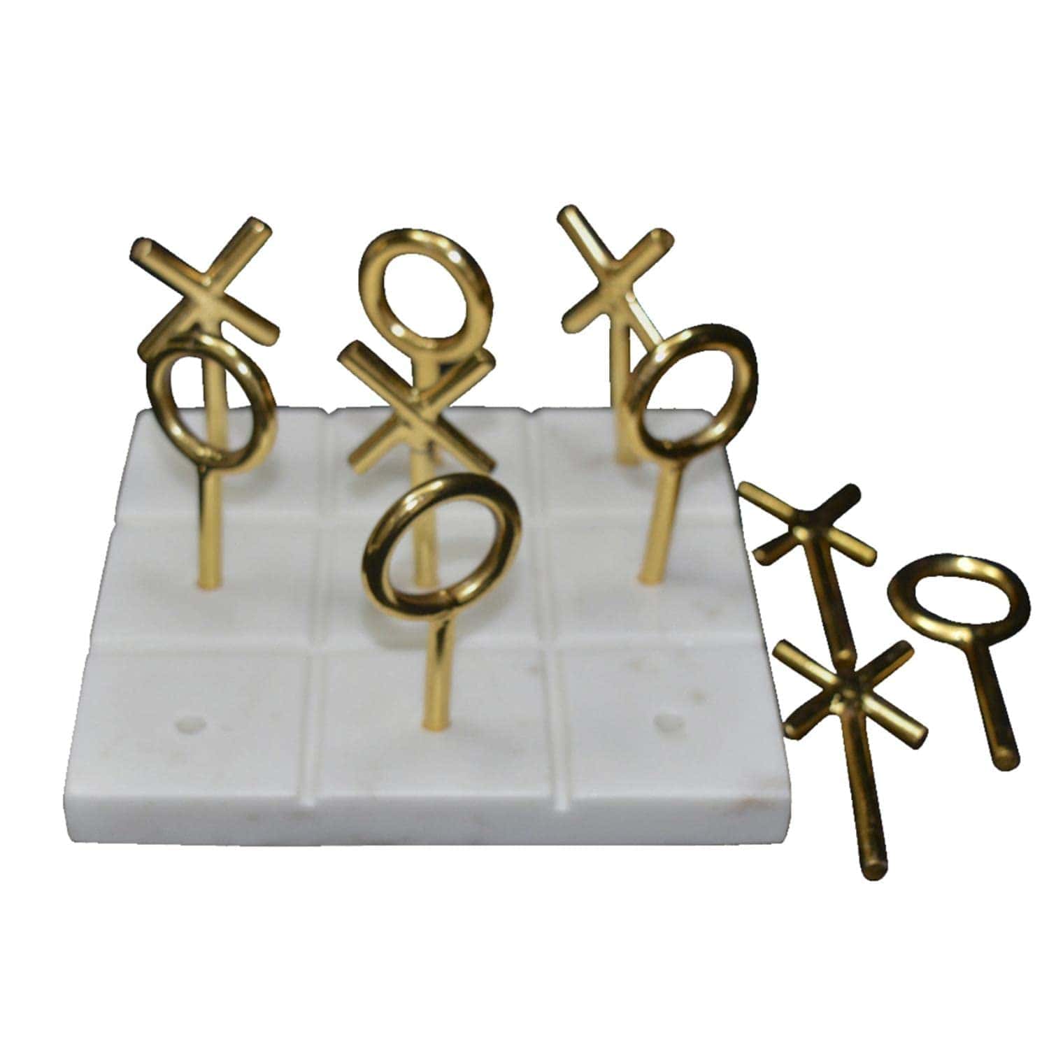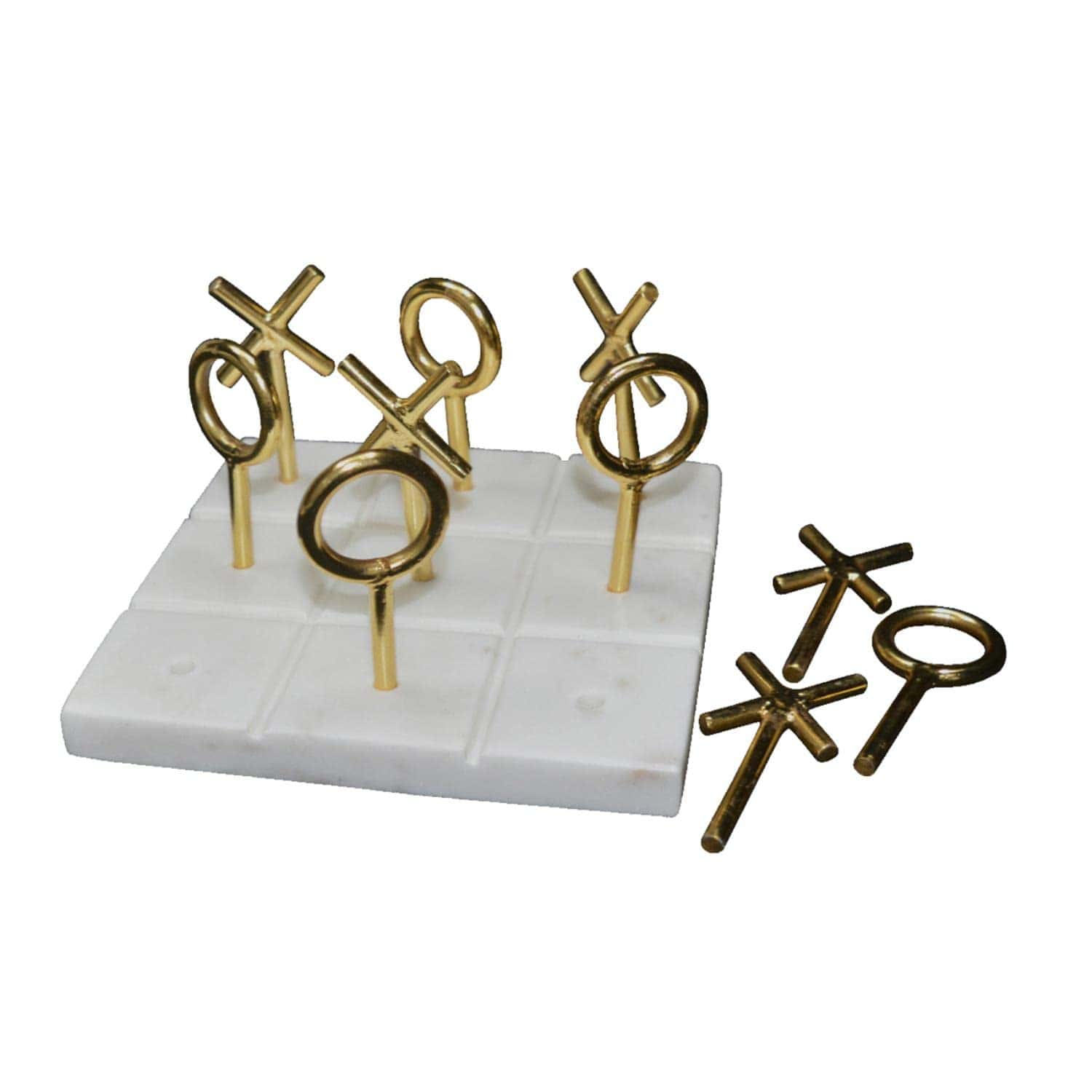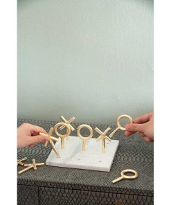 Un juego clásico con un toque moderno, el Juego de Gato en Mármol Banswara presenta brillantes fichas X y O doradas que se insertan en un tablero de juego de mármol blanco para un aspecto moderno y deslumbrante. Desafía a tus amigos a un juego amistoso con esta divertida pieza decorativa. Perfecto para una oficina elegante, un recibidor ecléctico o un solárium nítido, el Juego de Gato en Mármol Banswara añade diversión y glamour a cualquier espacio de hogar u oficina. Este juego clásico aporta tanto diversión como estilo moderno. Las fichas doradas y el mármol blanco crean un aspecto glamoroso. Pieza decorativa elegante y divertida para cualquier hogar u oficina. Colección: Evento. Estilo: Moderno Chic. Material: 75% Mármol, 25% Metal. Tamaño del producto: 6.4″L x 6.4″An x 3.4″Al. Requiere ensamblaje: No. Hecho en India.