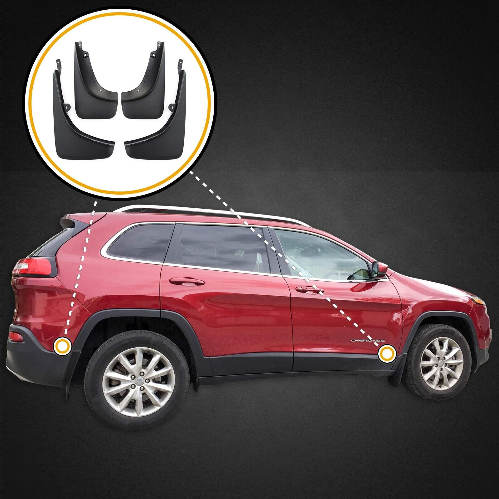 Juego de guardabarros delanteros y traseros a medida Red Hound Auto compatibles con Jeep Cherokee 2014-2018 (No se ajusta a Trail Hawk, NO se ajusta a GRAND CHEROKEE). Incluye guardabarros delanteros y traseros (para ambos lados izquierdo y derecho) con hardware de montaje e instrucciones de montaje. Ajuste garantizado y fácil de instalar: nuestros guardabarros están diseñados a medida para lograr un aspecto moldeado de fábrica hermoso (Número de referencia: 82213880AB-82213879AB). Resistente: ¡Nada de plástico débil aquí!; nuestros guardabarros son de polímero grueso y resistente para resistir cualquier cosa que la carretera les dé. Probados en calidad: nuestros guardabarros fueron puestos a prueba; Nuestra fábrica de alta tecnología sometió a los guardabarros a muchas horas de pruebas para asegurar que sean de la más alta calidad y duren toda la vida.