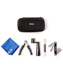 Este kit incluye las siguientes herramientas de calidad profesional que puedes utilizar para cambiar tus cuerdas rápidamente y sin frustración: Speedwinder universal, cortador de cuerdas compacto, bolígrafo de gel Superlube, llave hexagonal multitool y paño de pulir de microfibra.