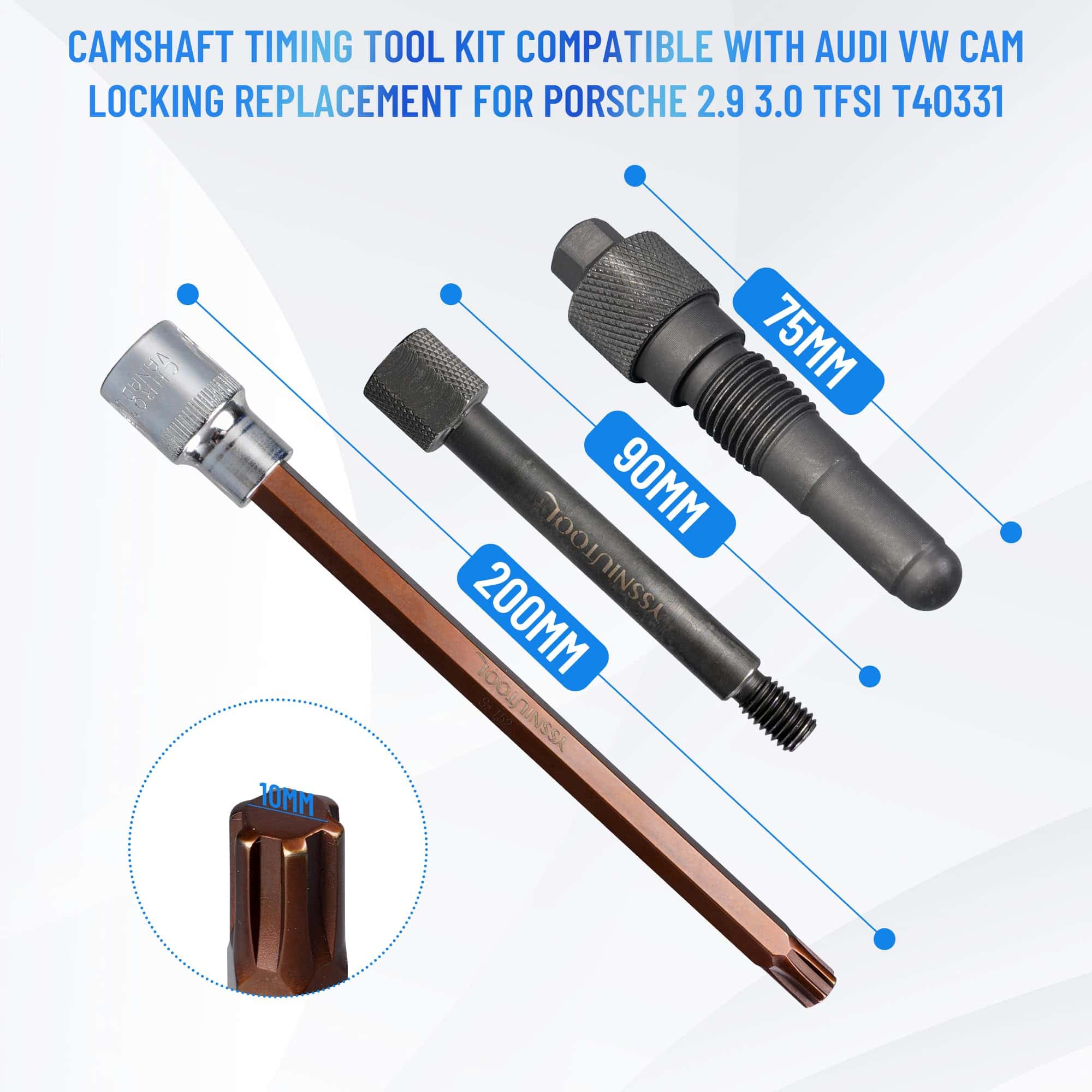1. Modelos de coche aplicables: Herramienta de alineación de árboles de levas compatible con Audi A4 2016 6 cilindros. Motor de inyección directa 3.0l TFSI 4V motor EA 839, compatible con Porsche 3.0T 2.9T versión híbrida, etc.