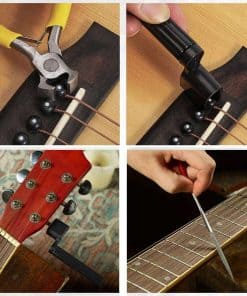 Este kit de herramientas de reparación de guitarra está diseñado para ayudar a completar las reparaciones y ajustes más comunes en guitarras. Incluye una variedad de herramientas como cortadoras de cuerda, llaves hexagonales, lima de trastes, limpiador de cuerdas y más. Con una bolsa de transporte incluida, este kit compacto es perfecto tanto para principiantes como para músicos experimentados. Ideal para cambiar cuerdas, ajustar la acción y mantener tus instrumentos de cuerda en óptimas condiciones.
