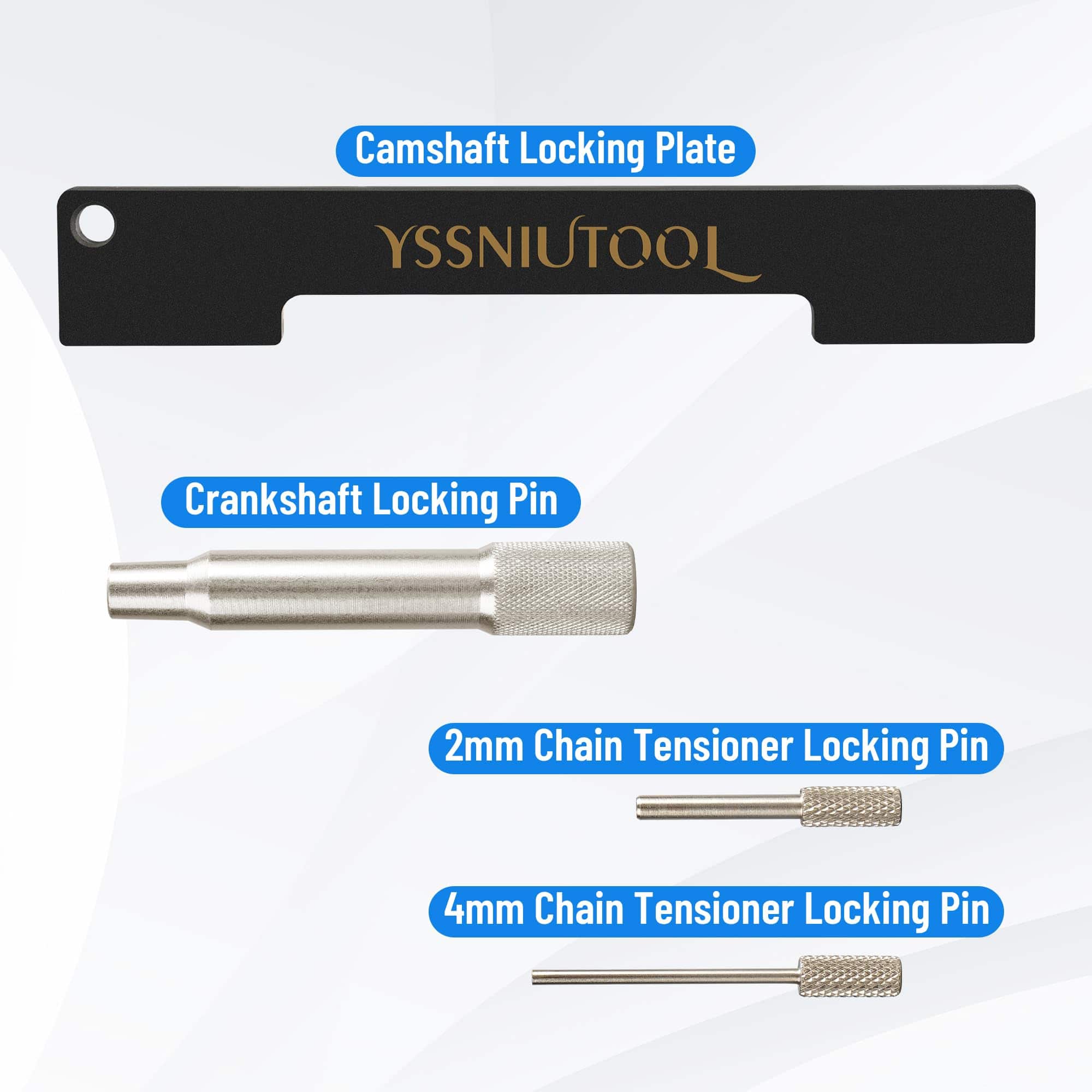 5. Paquete incluido: El kit de sincronización para chevy cruze incluye 1 pasador de bloqueo del cigüeñal, 1 herramienta de sujeción de piñón del árbol de levas, 1 placa de ajuste del árbol de levas, 2 herramientas de ajuste del sensor del árbol de levas y 2 pasadores de bloqueo del tensor de la cadena, todo esto viene con un estuche portátil para un transporte y almacenamiento fácil de las herramientas.