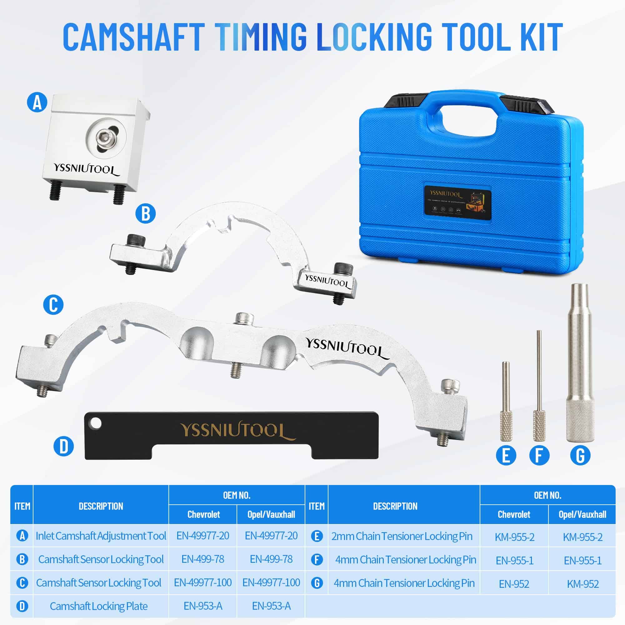 1. COMPATIBILIDAD AMPLIA: Este juego de herramientas de motor es compatible con los últimos Chevrolet Aveo, Cruze y Orlando 1.2L y 1.4L, así como con una gran cantidad de los últimos vehículos Vauxhall y Opel 1L, 1.2L y 1.4L: Adam, Ampera, Astra J, Cascada, Corsa D, Insignia, Meriva B, Mokka y Zafira Tourer C, etc.Los accesorios azules son llamativos y únicos.