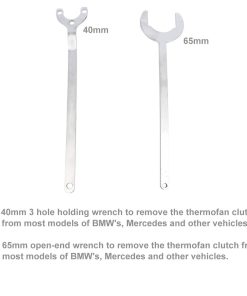 El paquete incluye: 1 Llave inglesa de embrague de ventilador Mercedes-Benz con apertura de 65 mm 1 Llave inglesa de embrague de ventilador BMW con apertura de 32 mm 1 Llave inglesa de embrague de ventilador Mercedes-Benz con apertura de 36 mm 1 Llave inglesa de embrague de ventilador Mercedes-Benz con apertura de 40 mm 1 Llave inglesa de sujeción de embrague de ventilador BMW con 38 mm y 44,5 mm 1 Herramienta de sujeción de embrague de ventilador Mercedes-Benz 1 Llave de ajuste universal de correa de ventilador 1 Llaves Allen 10 mm 1 Llaves Allen 8 mm 1 Llaves Allen 2,5 mm