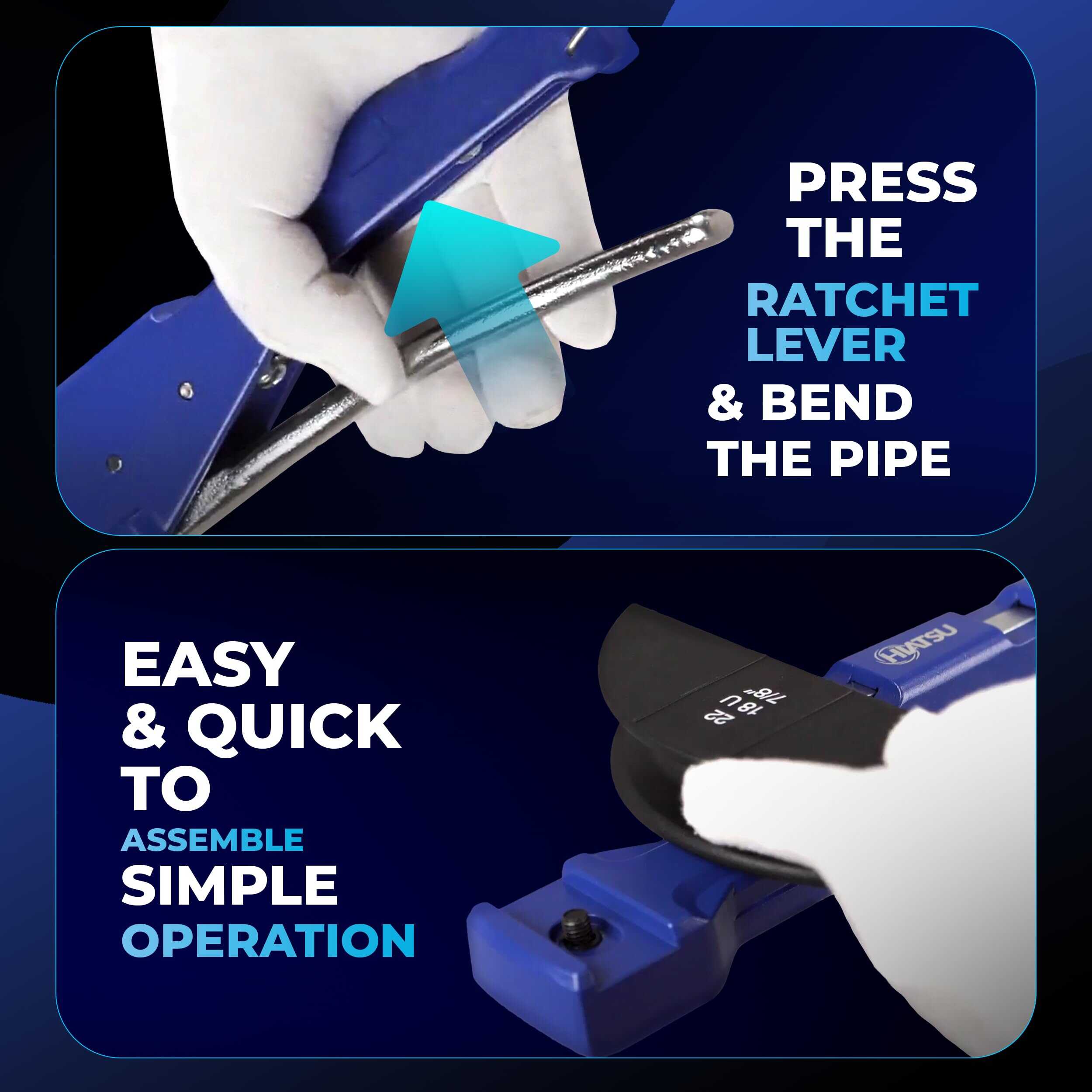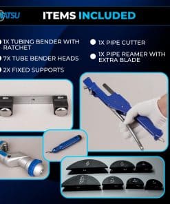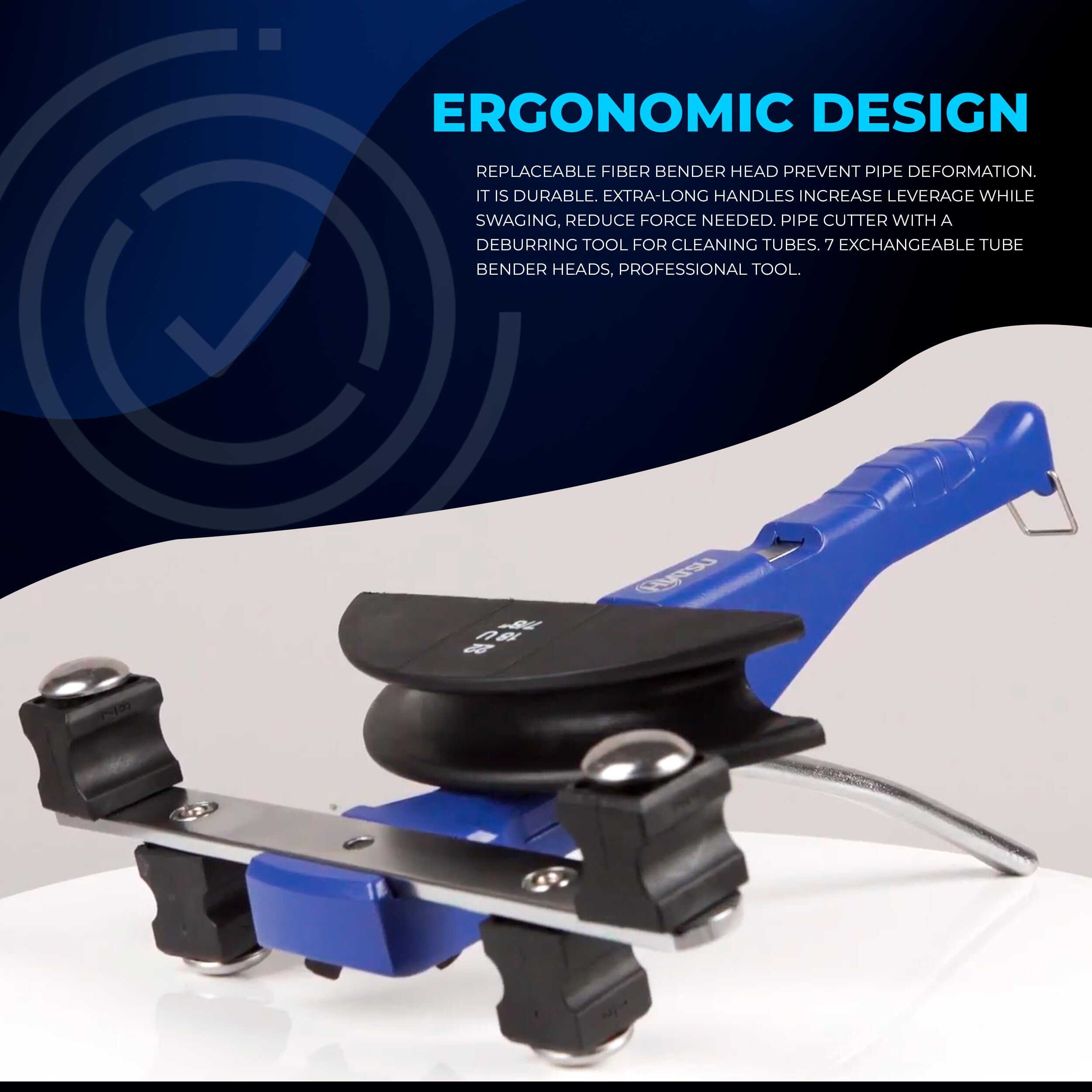 4. Construcción premium: El robusto diseño de la herramienta dobladora de cobre incluye cabezales de doblado reforzados, un cortador de tubos de cobre con herramienta de desbarbado y soportes fijos duraderos – diseñado para un rendimiento constante en aplicaciones de HVAC y fontanería exigentes.