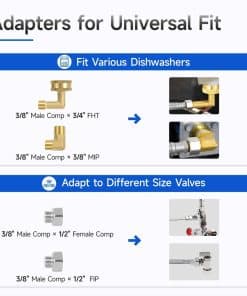 El kit de instalación para lavavajillas JUWO de 10 pies ofrece una solución completa para conectar su lavavajillas de manera segura y eficiente. Incluye una línea de suministro de agua de 3/8″ con adaptadores de codo y válvulas para adaptarse a una variedad de modelos de lavavajillas y tipos de válvulas. La manguera de agua de 10 pies permite una instalación de agua de largo alcance para apartamentos y casas grandes, lo que lo hace ideal para instalaciones de lavavajillas en hogares de gran tamaño. La construcción reforzada con caucho de alta calidad y un núcleo de EPDM flexible garantiza que la manguera sea resistente a explosiones y dobleces, lo que le brinda tranquilidad al utilizar su lavavajillas. El diseño a prueba de fugas con un empaque de caucho y adaptador de latón macizo asegura una conexión segura y sin fugas. Certificado por CUPC, esta línea de suministro de lavavajillas garantiza que el agua sea segura para beber y esté libre de olores desagradables. Si está buscando un kit de instalación confiable y de alta calidad para su lavavajillas, el juego de instalación JUWO de 10 pies es la elección perfecta.