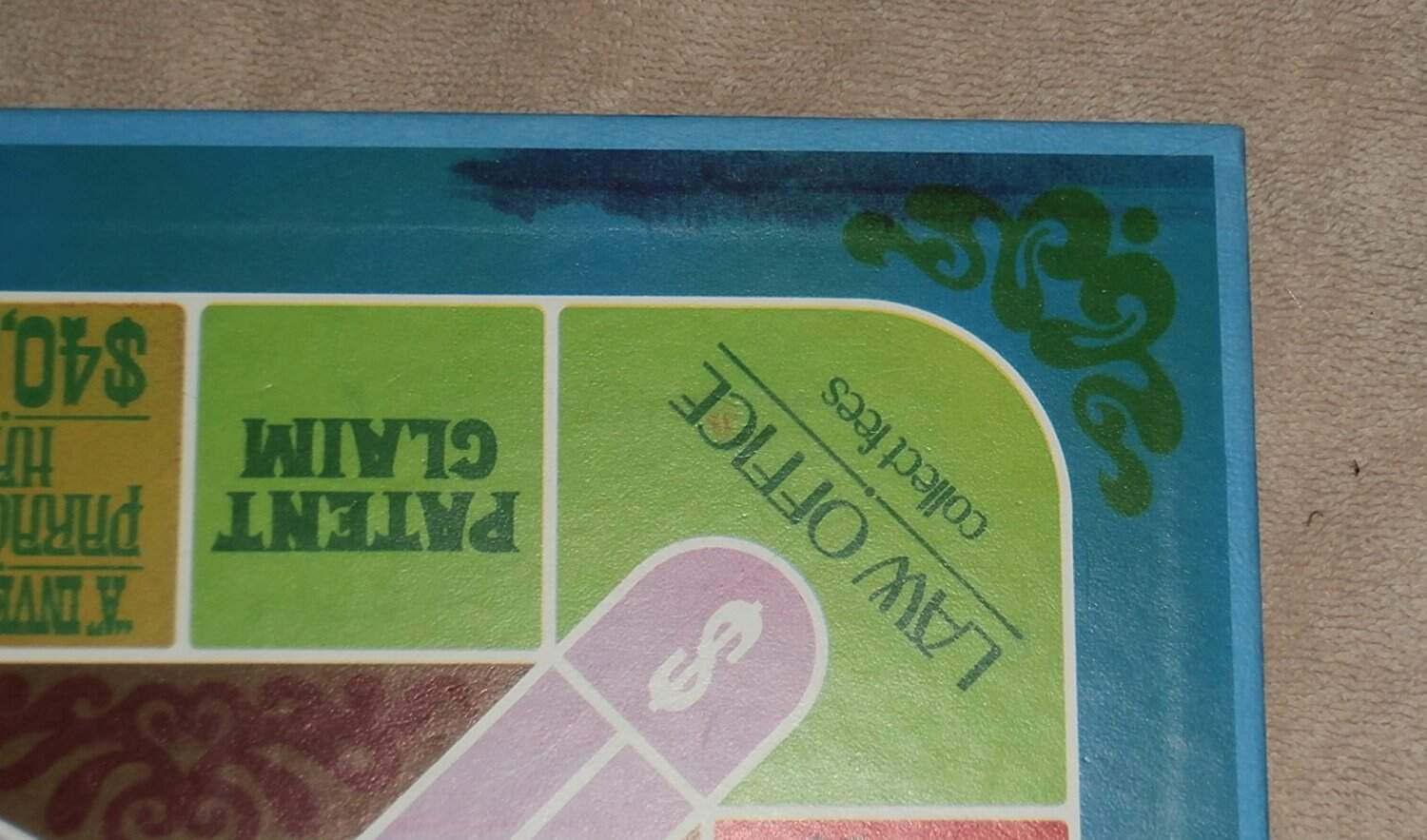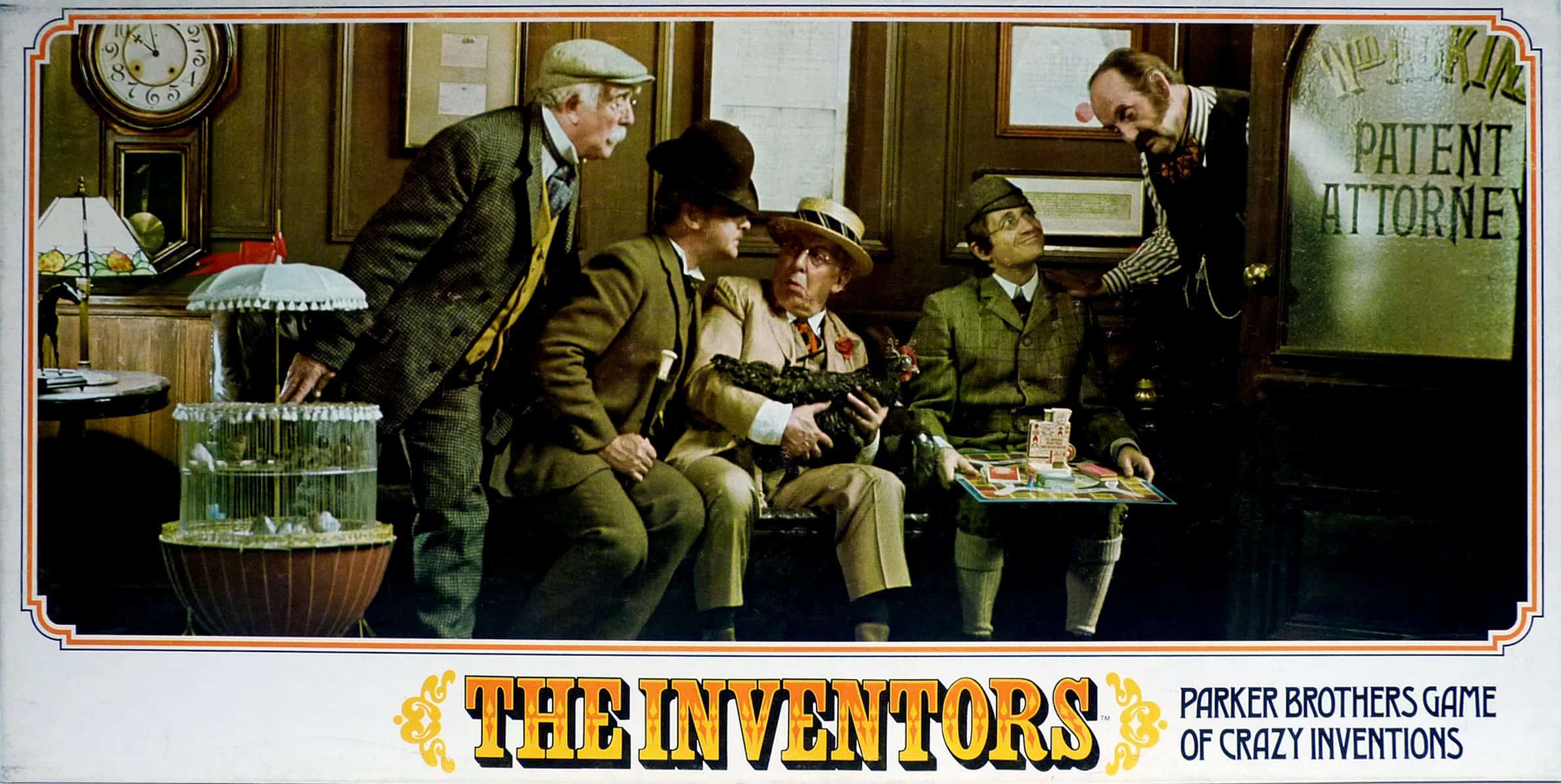 Aquí tienes la oportunidad de comprar algunas invenciones verdaderamente geniales: la Máquina Voladora con Energía de Aves, la Silla Mecedora con Aire Acondicionado y Protectores Oculares para Pollos, por mencionar algunas. En el riel exterior podrás adquirir divertidas invenciones antiguas de la Oficina de Patentes de EE. UU. El riel interior paga las regalías y la Increíble Máquina de Hacer Movimientos de la Patente Elige tus dados y dispensa reclamos de patentes. ¡Diversión garantizada para toda la familia.