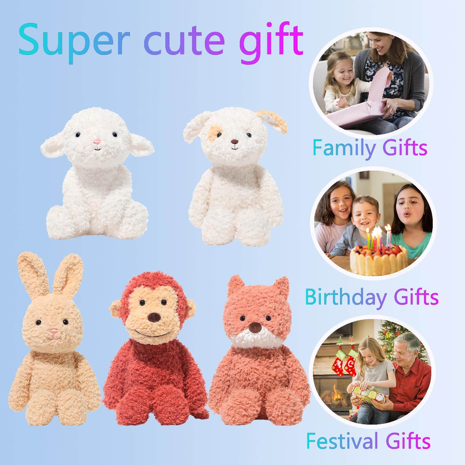1. JUEGO CLÁSICO DE ANIMALES DE PELUCHE LINDOS: Obtendrás un perro, conejo, oveja, zorro, mono para un total de 5 juguetes de peluche. Cada animal de peluche mide 12 pulgadas de alto y tiene un pelaje corto súper suave con una apariencia linda. Es un pequeño bebé tranquilo y tímido, especialmente adecuado para abrazar y súper curativo. Estos amigos clásicos de diseño, forma linda y acogedora son perfectos para que tú y tus hijos jueguen y duerman juntos.