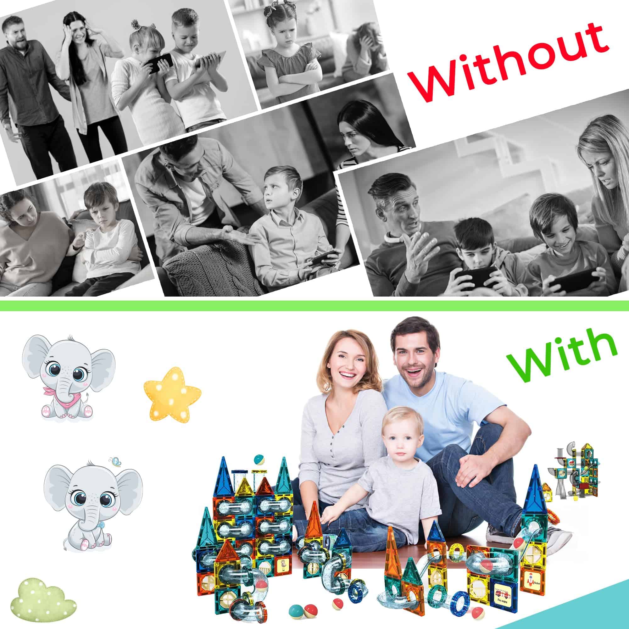 Presentamos nuestro Juego de Juguetes para Niños de 168 Piezas, una innovadora y educativa serie de construcción diseñada para inspirar creatividad y aprendizaje STEM en los niños. Con 168 piezas coloridas incluyendo bloques magnéticos, tubos y conectores, este juguete ofrece infinitas posibilidades de construcción. Los niños pueden diseñar y construir intrincados tubos, recorridos de canicas y estructuras, fomentando habilidades de pensamiento crítico, resolución de problemas y razonamiento espacial. Hecho con materiales de alta calidad y duraderos, estos Magna Tiles están diseñados para resistir horas de juego imaginativo. Los componentes magnéticos se unen fácilmente, permitiendo a los niños experimentar con la gravedad, el movimiento y los conceptos de ingeniería de una manera divertida y comprometida. Ya sea construyendo diseños simples o creaciones elaboradas, el Juego de Juguetes para Niños de 168 Piezas proporciona horas de entretenimiento y aprendizaje para niños de 3 años en adelante. ¡Fomente la exploración y el descubrimiento con este versátil y cautivador conjunto de construcción! Diseñado con colores vibrantes y componentes magnéticos sensoriales, este innovador juguete fomenta infinitas posibilidades para construir y construir una amplia gama de estructuras, todo mientras nutre la imaginación de su hijo. Beneficios: